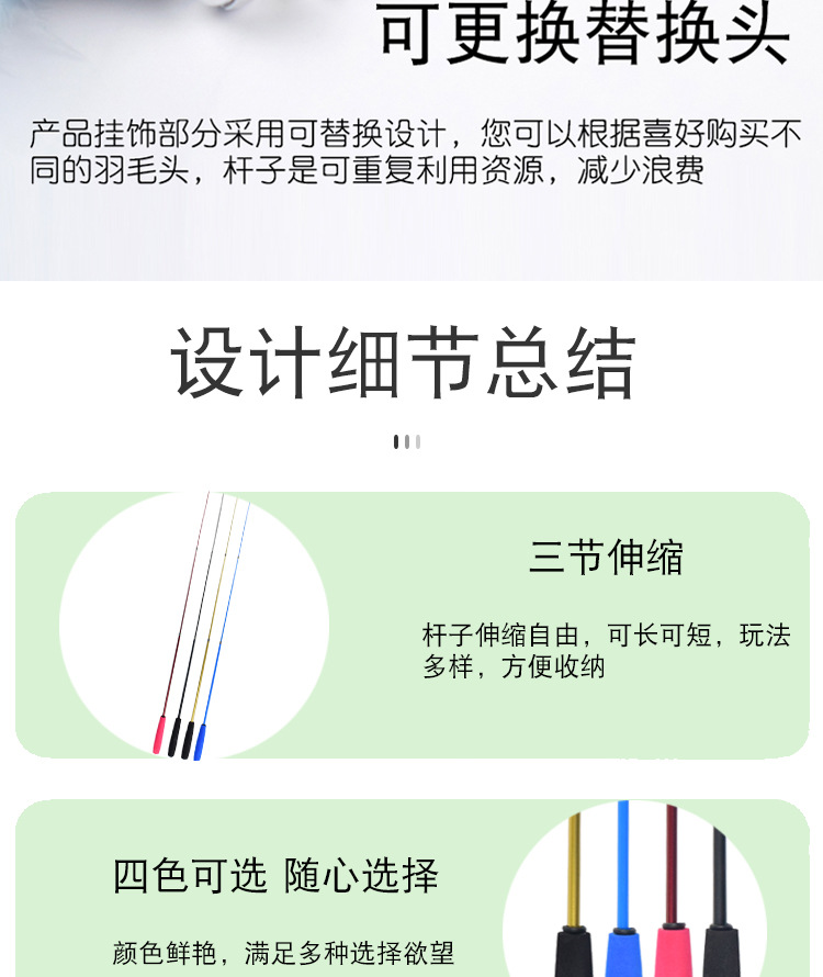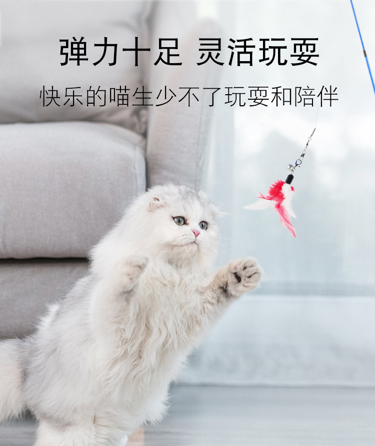 고양이 장난감 조합 고양이 스틱 3 텔레스코픽 로드 깃털 교체 헤드 낚싯대 고양이 스틱 고양이 장난감 도매
