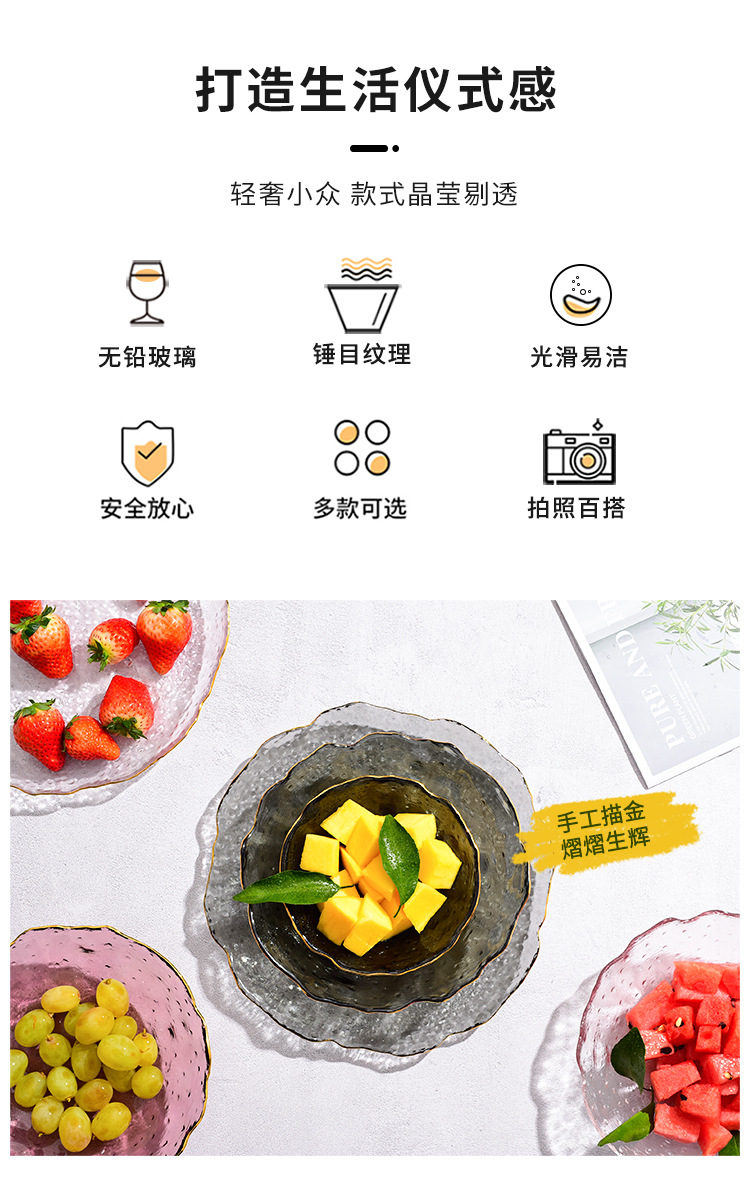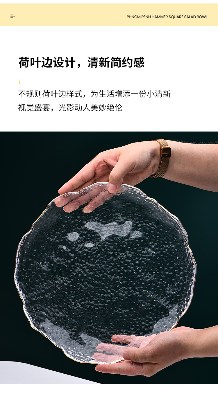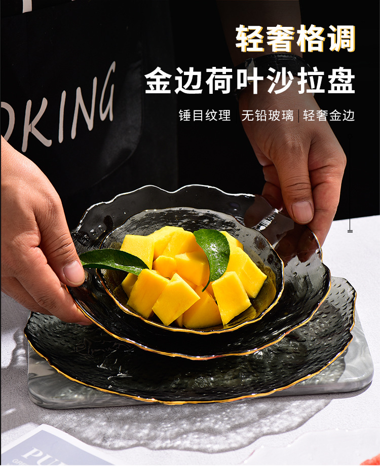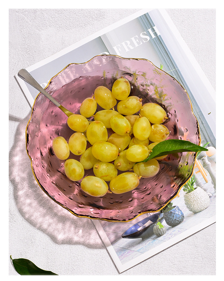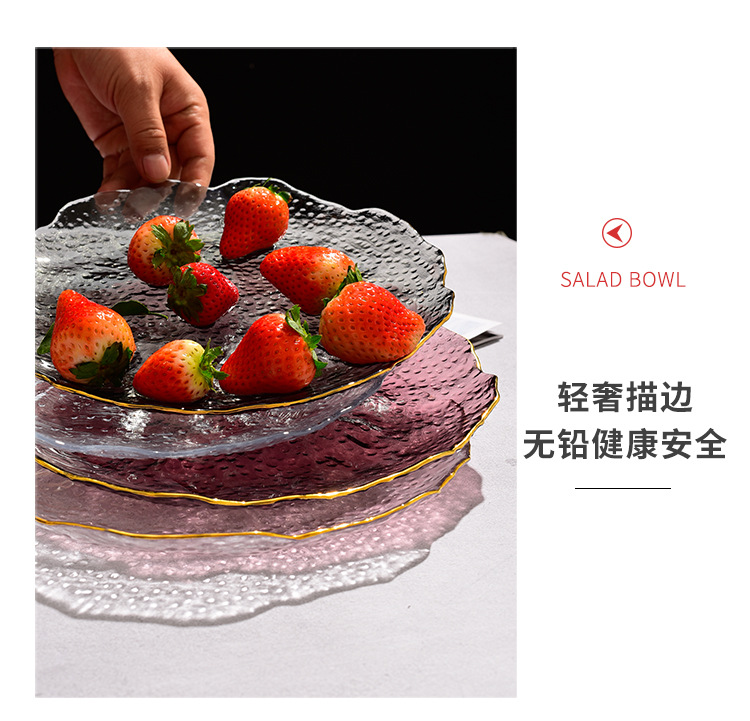 제조업체 맞춤형 유리 연잎 접시, 연회색 접시, 망치질 패턴 과일 접시, 거실 접시, 수납 및 정리 트레이, 모던하고 심플한 디자인스토어 가기