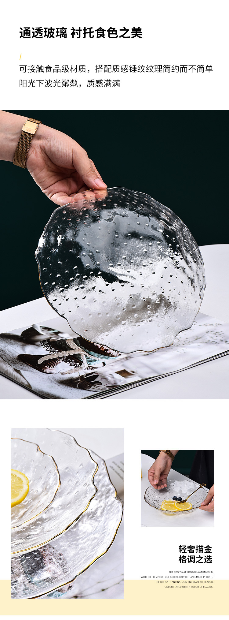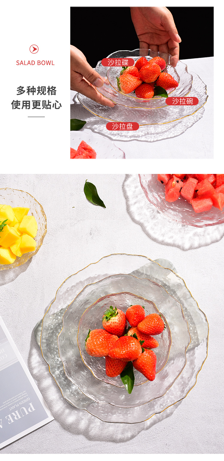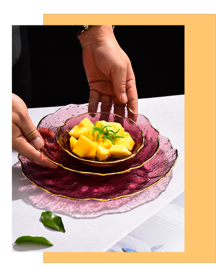 제조업체 맞춤형 유리 연잎 접시, 연회색 접시, 망치질 패턴 과일 접시, 거실 접시, 수납 및 정리 트레이, 모던하고 심플한 디자인스토어 가기