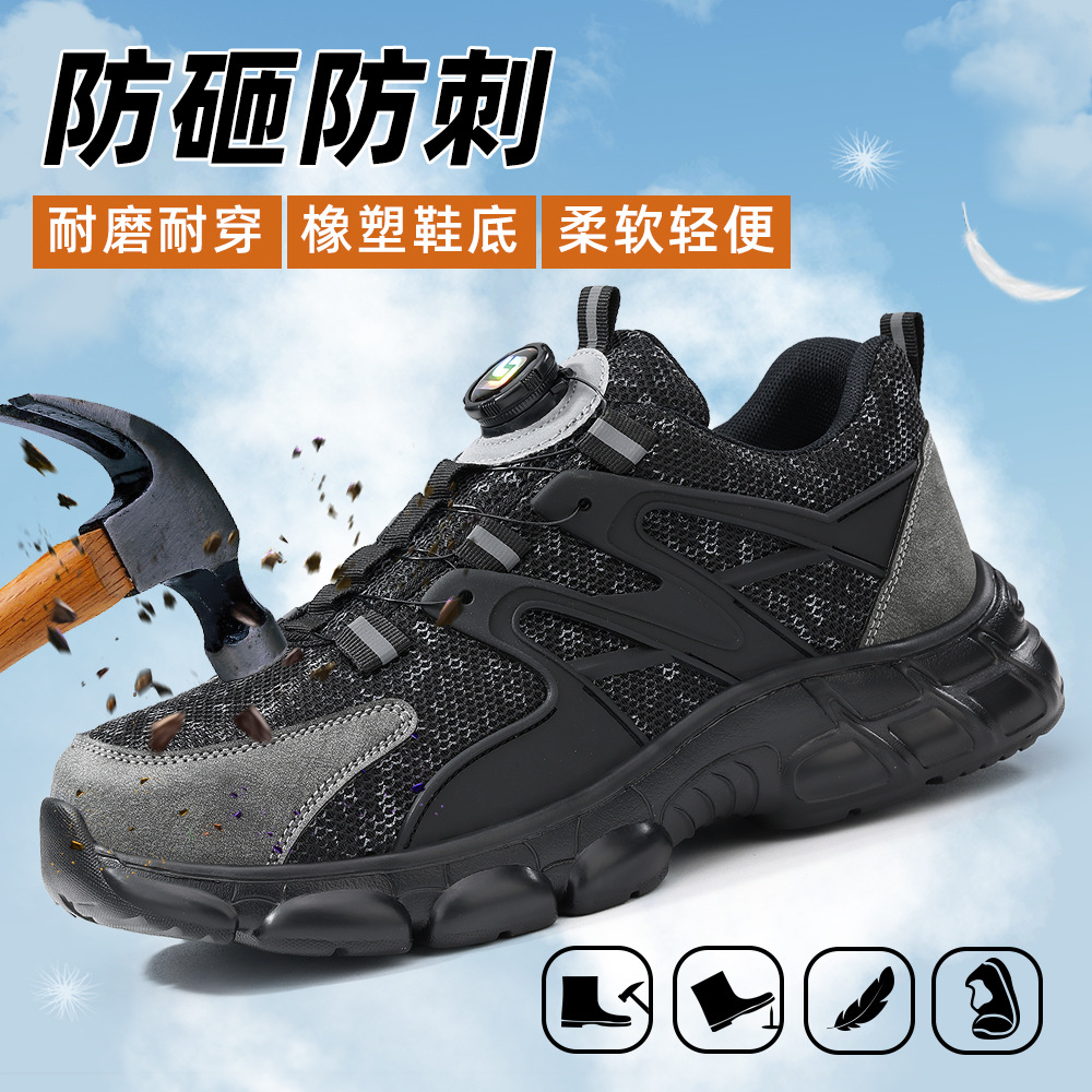 플라잉 짠 메쉬 안전화 남성용 스매시 방지 펑크 방지 스틸 발가락 내마모성 부드러운 밑창 경량 미끄럼 방지 보호 작업 신발스토어 가기