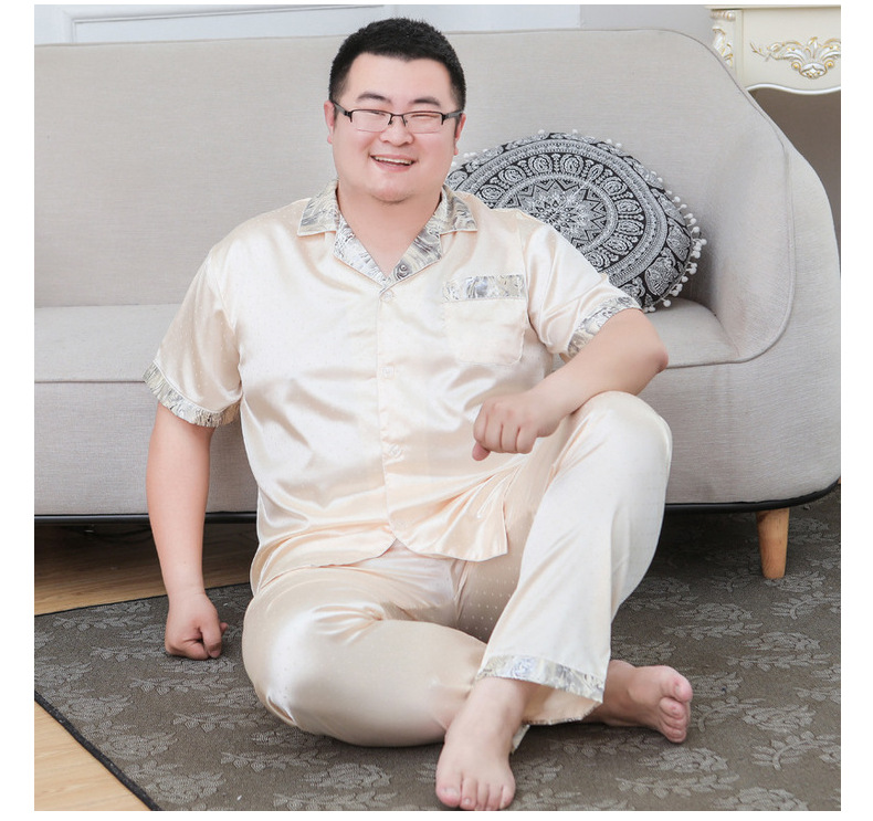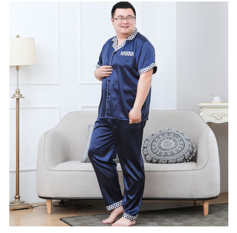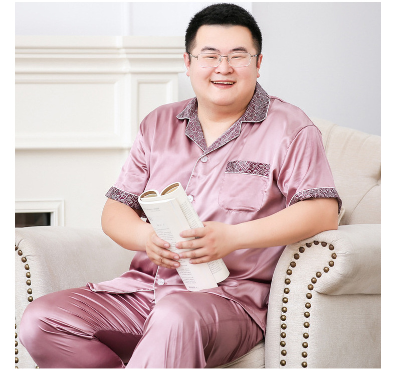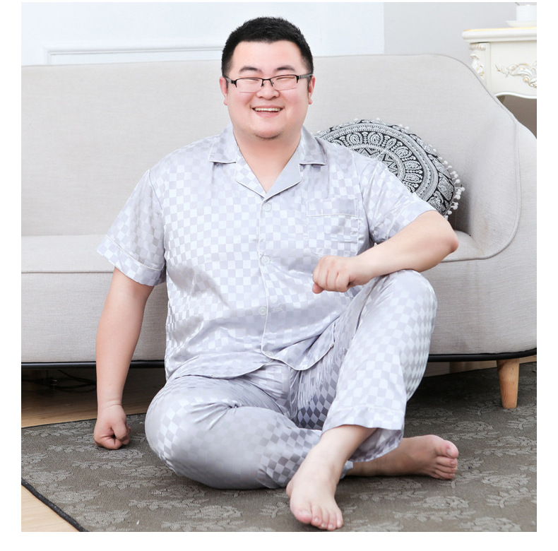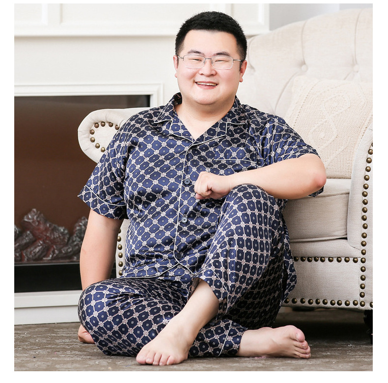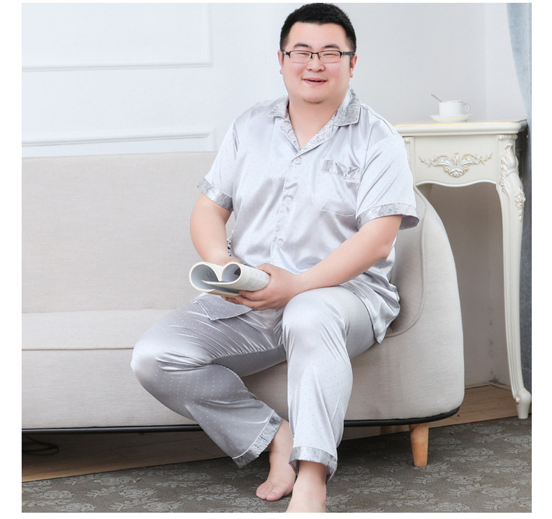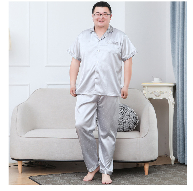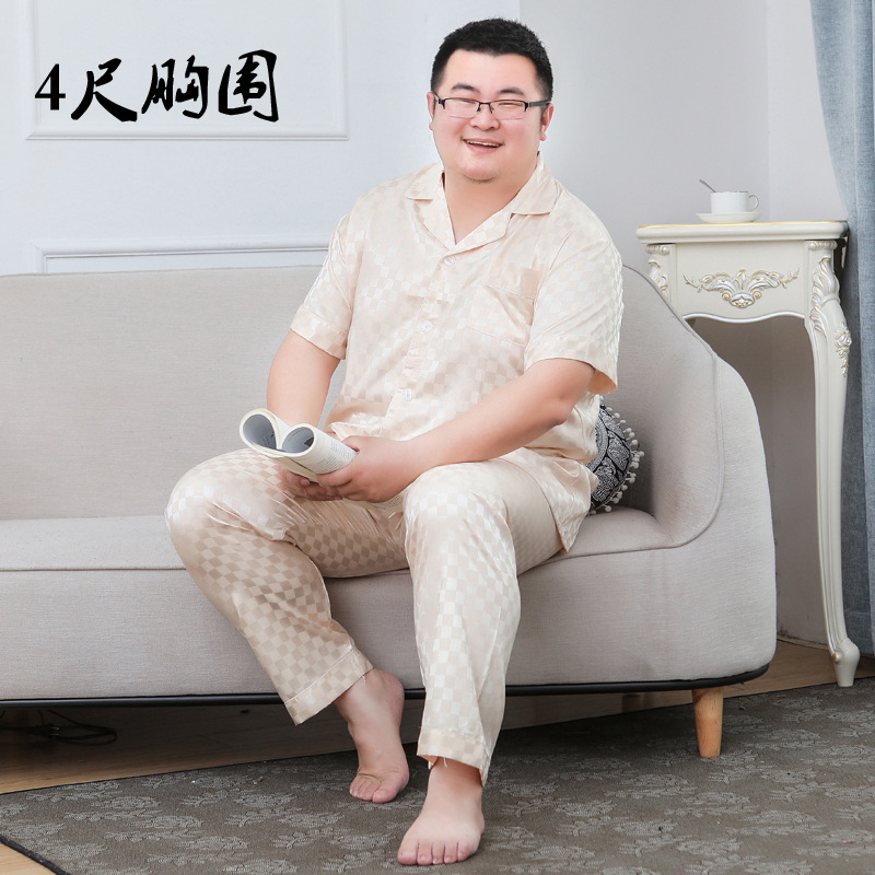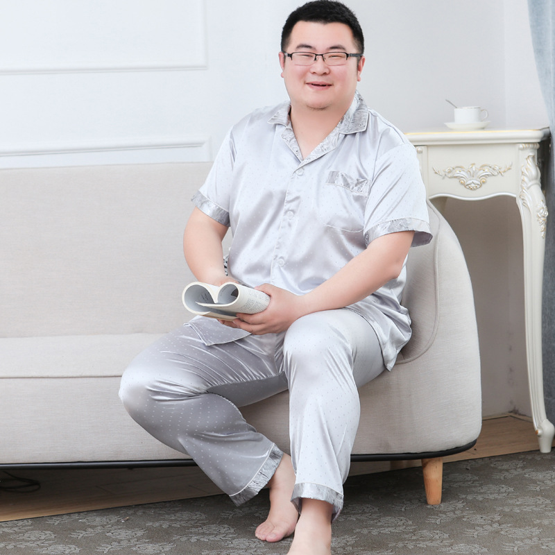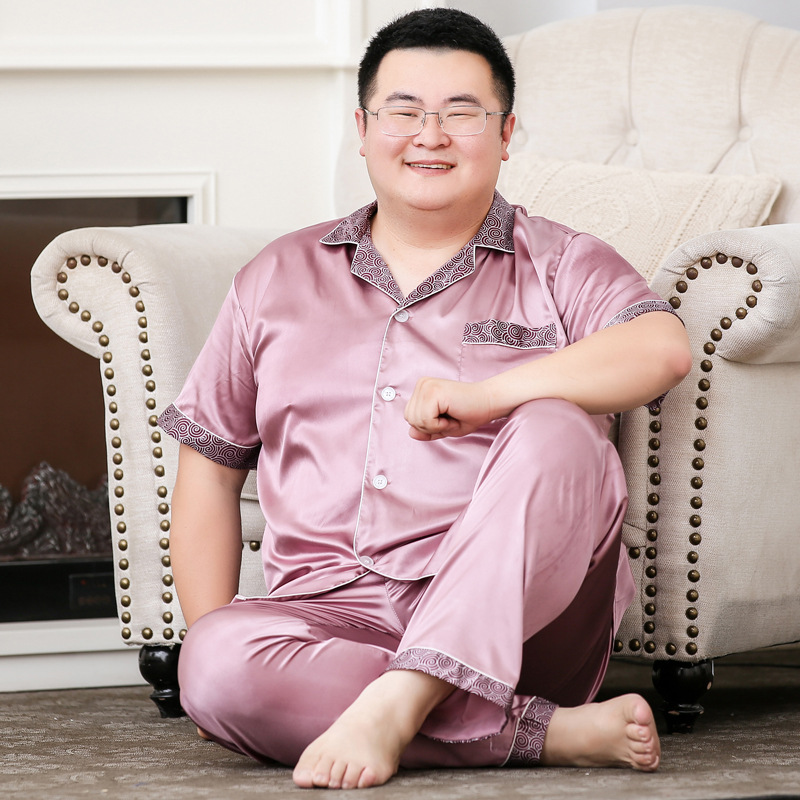 도매 대형 250kg 실크 잠옷 남자의 여름 얇은 플러스 지방 플러스 큰 크기 뚱뚱한 남자 아이스 실크 세트 가정 옷스토어 가기