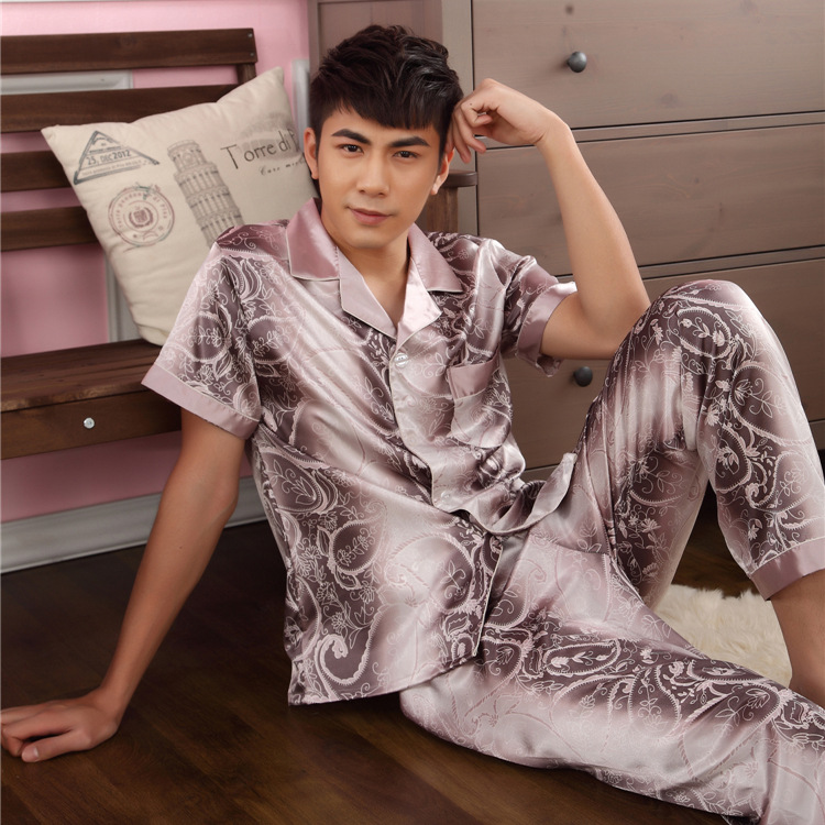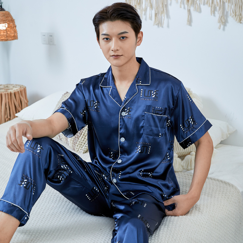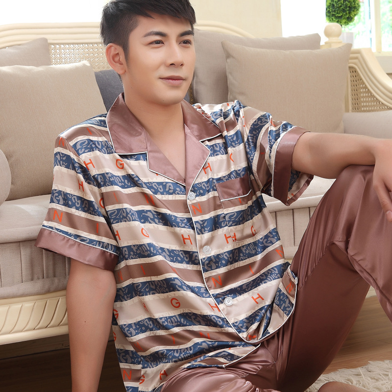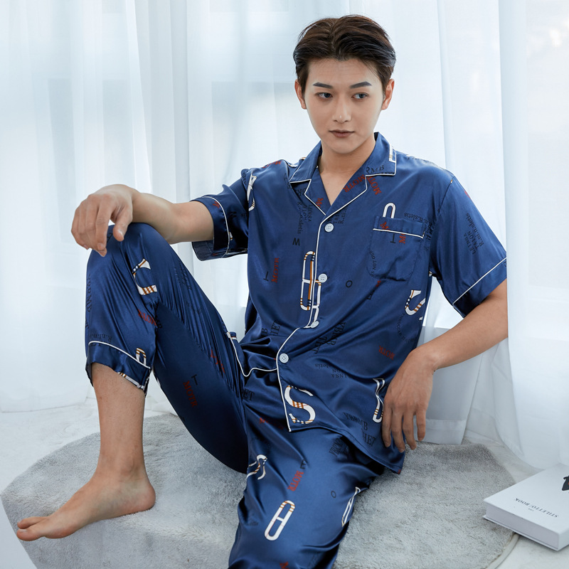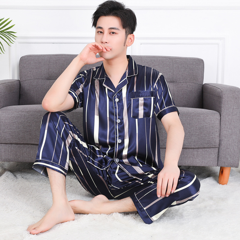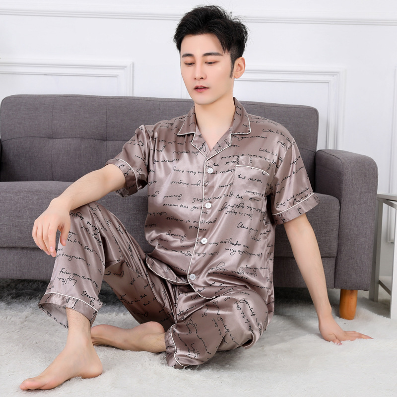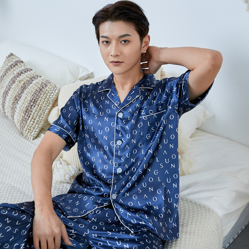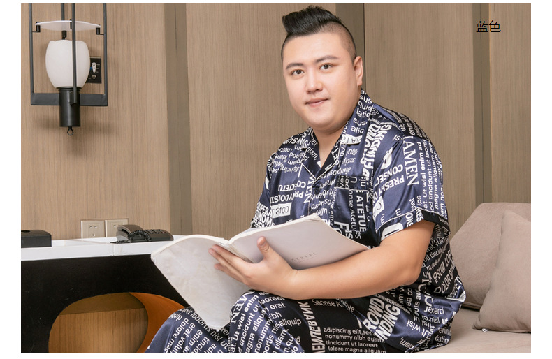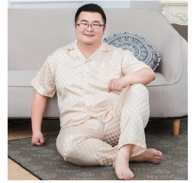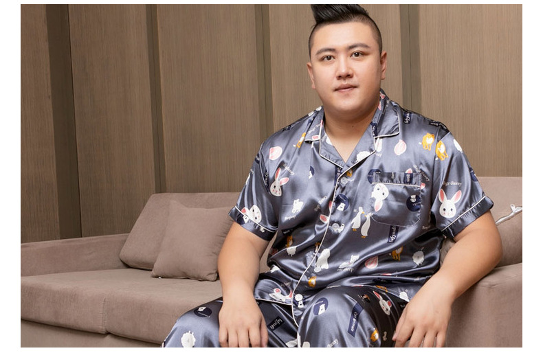도매 대형 250kg 실크 잠옷 남자의 여름 얇은 플러스 지방 플러스 큰 크기 뚱뚱한 남자 아이스 실크 세트 가정 옷스토어 가기