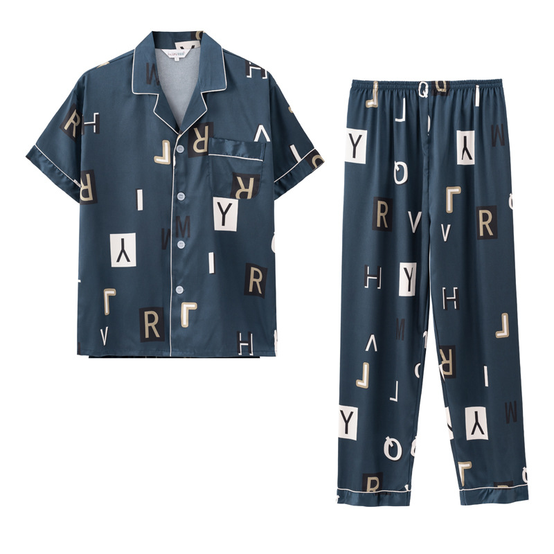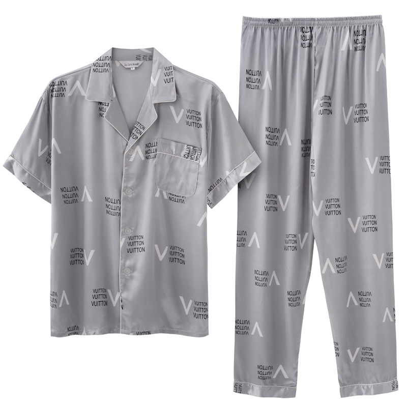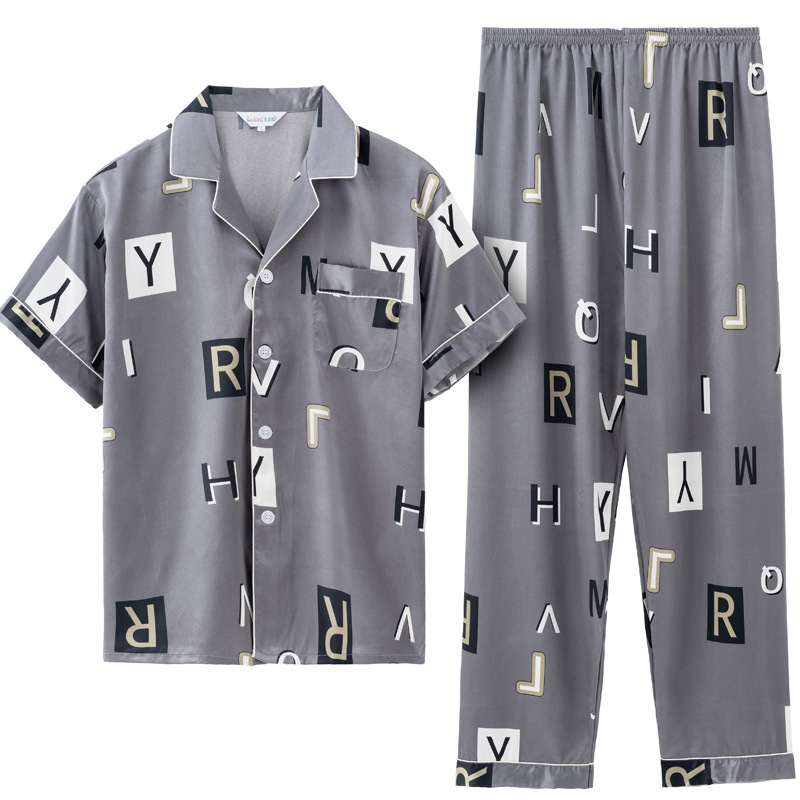 도매 대형 250kg 실크 잠옷 남자의 여름 얇은 플러스 지방 플러스 큰 크기 뚱뚱한 남자 아이스 실크 세트 가정 옷