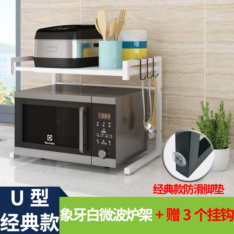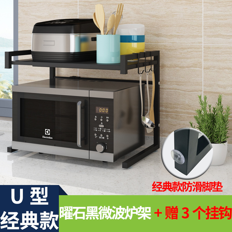 개폐식 주방 수납 랙 전자 레인지 랙 보관 가정용 더블 레이어 테이블 탑 데스크탑 전기 밥솥 캐비닛