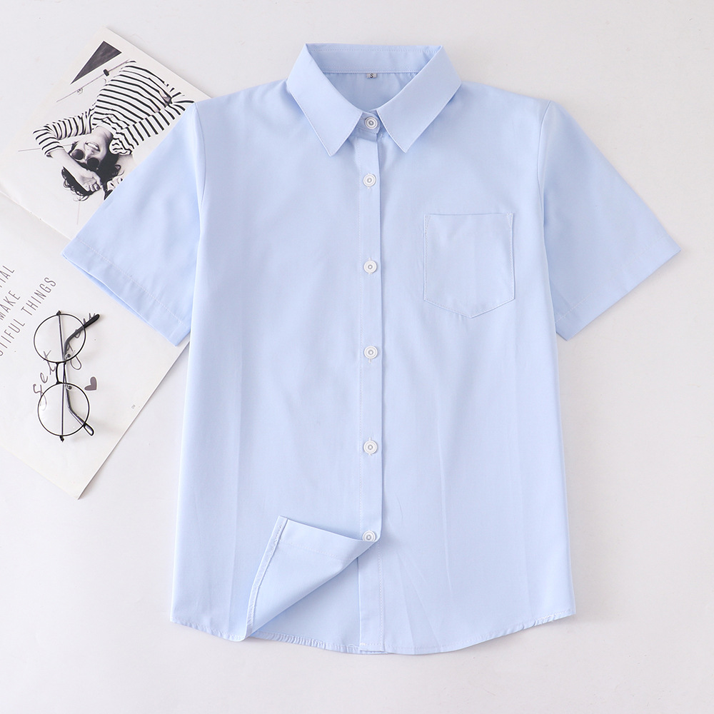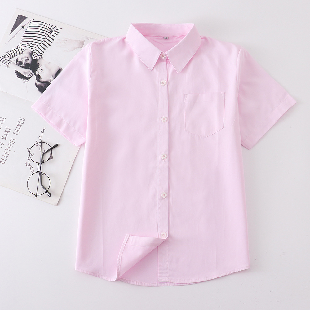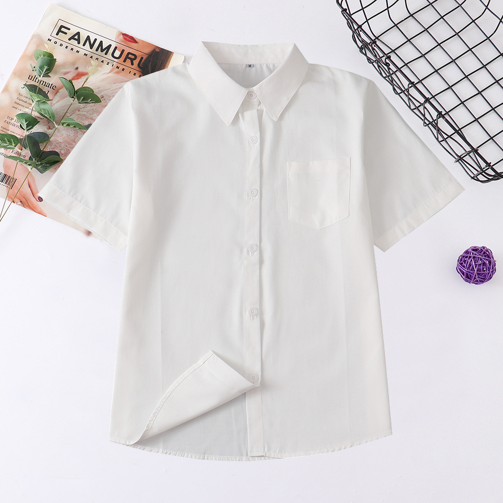 공장 재고 도매 JK 유니폼 뾰족한 칼라 반팔 기본 셔츠 캐주얼 블라우스 흰색 바지스토어 가기