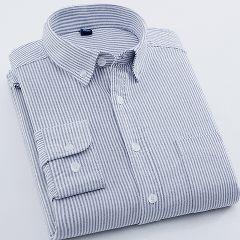새로운 2025 봄 한국 스타일 셔츠 남성용 코튼 옥스포드 철분 캐주얼 다목적 긴팔 스트라이프 셔츠 남성용
