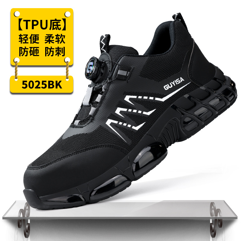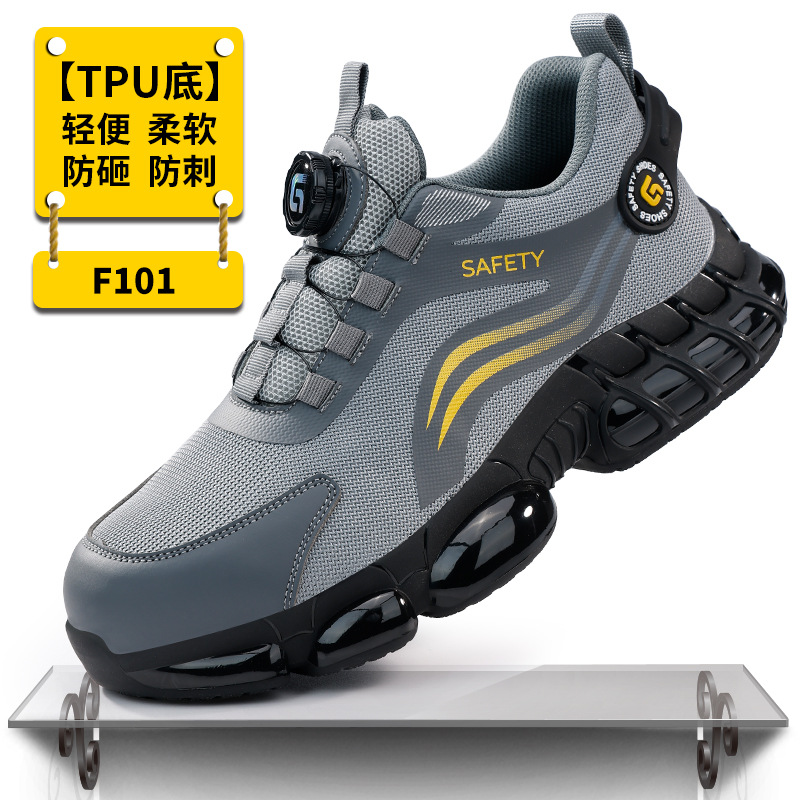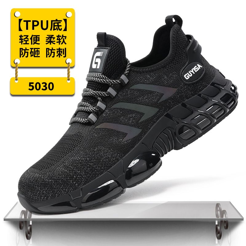 남성용 크로스보더 플라이 니트 노동 보호 신발, 스매싱 방지 및 펑크 방지 강철 발가락 신발, 통기성, 가벼운 밑창, 편안하고 안전한 여름 작업 신발