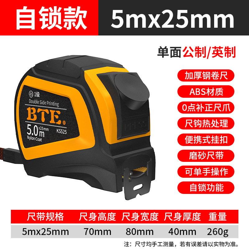원래 제조 업체 도매 자동 잠금 줄자 5m 두꺼운 낙하 방지 고무 코팅 강철 줄자 목공 10m /7.5m3m 상자 눈금자스토어 가기