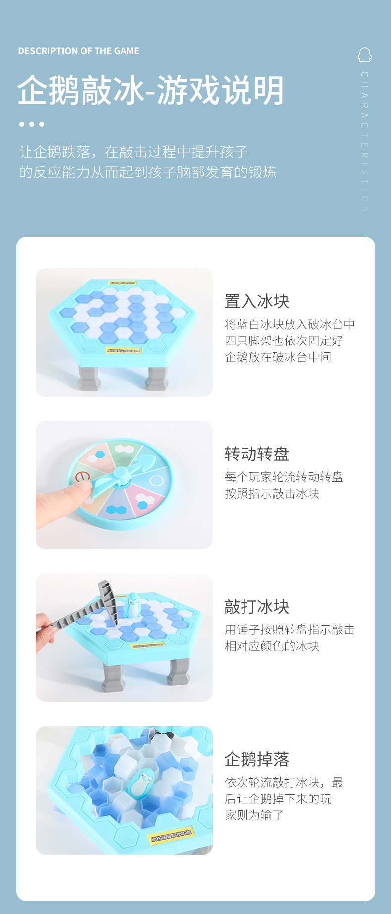 X023-14 스몰 사이즈 아이들은 펭귄을 구하기 위해 생각하는 얼음 조각에 노크 얼음 깨기 부모-자식 장난감 대화 형 보드 게임 장난감스토어 가기