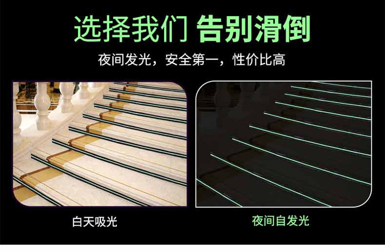 공장 직접 공급 형광 테이프 계단 화재 경고 테이프 단계 녹색 충돌 방지 발광 테이프스토어 가기