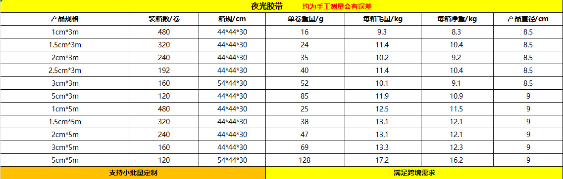 • 녹색 빛; 폭 2.5cm * 길이 3 미터
