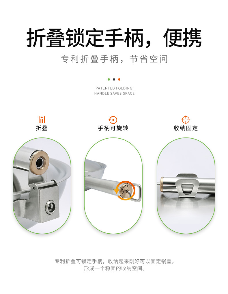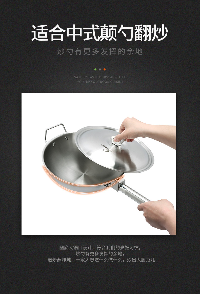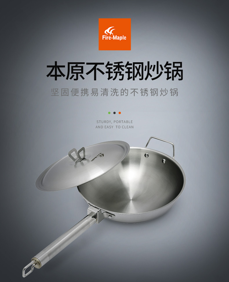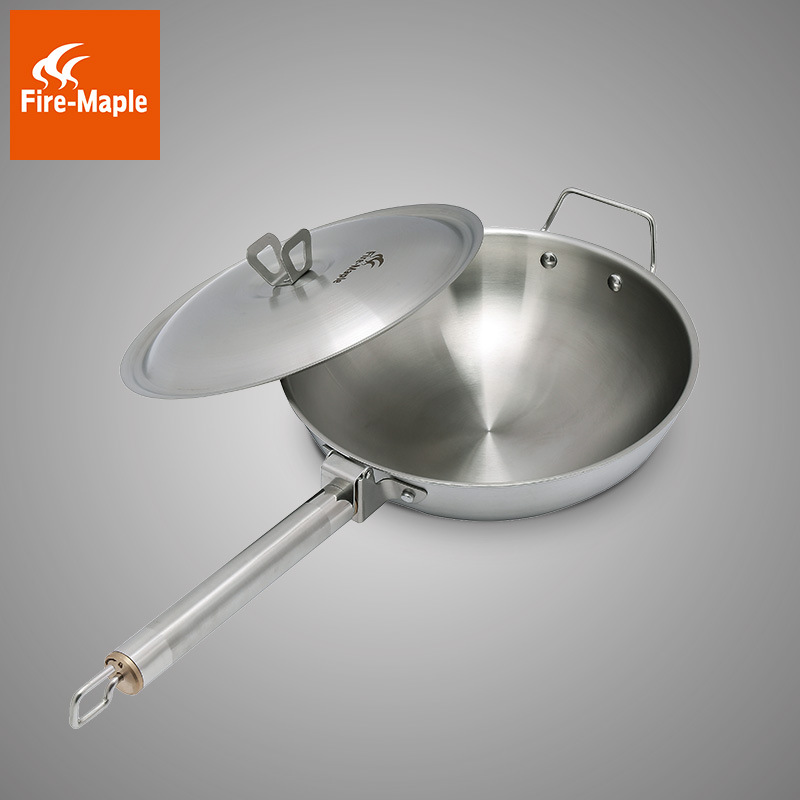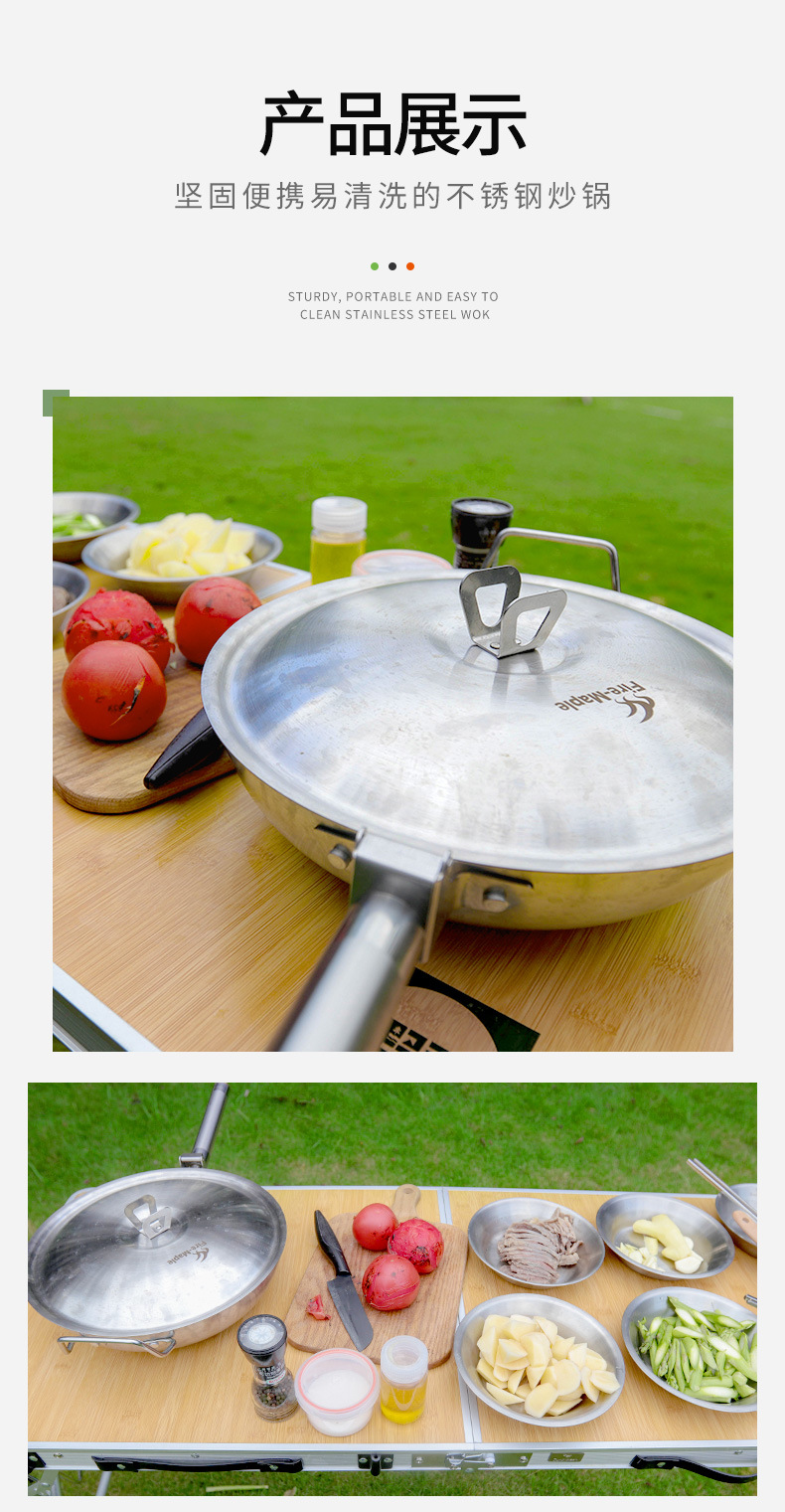 Huofeng 오리지널 스테인레스 스틸 웍 야외 휴대용 웍 자율 주행 캠핑 접이식 손잡이 조리기구