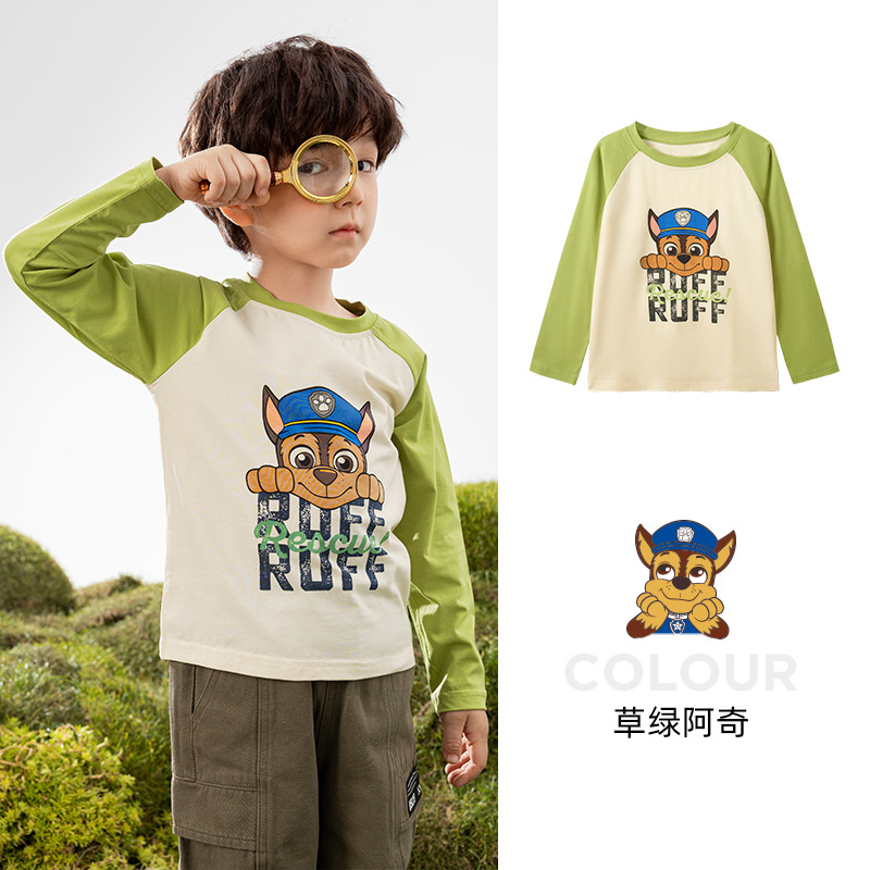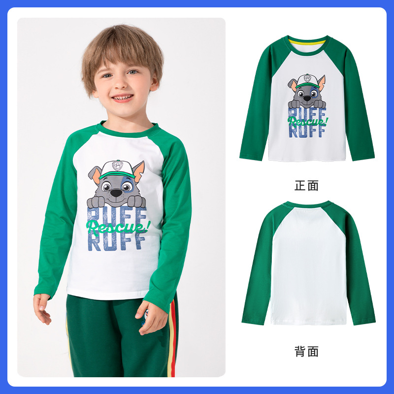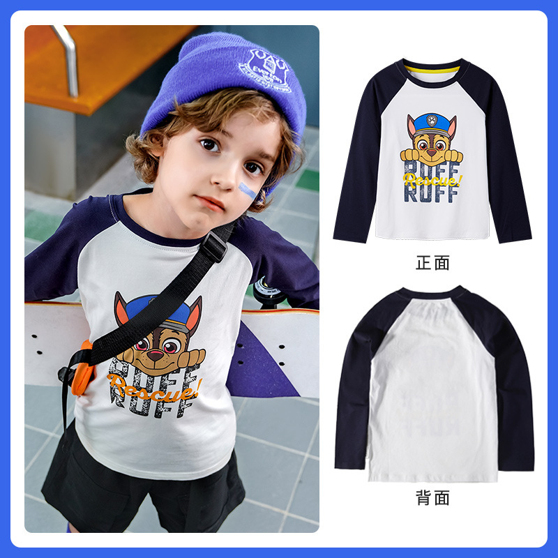 왕왕 팀 어린이 티셔츠 긴 소매 새로운 봄과 가을 의류 소년 대비 컬러 바닥 셔츠 소녀 아기 아동복 도매스토어 가기