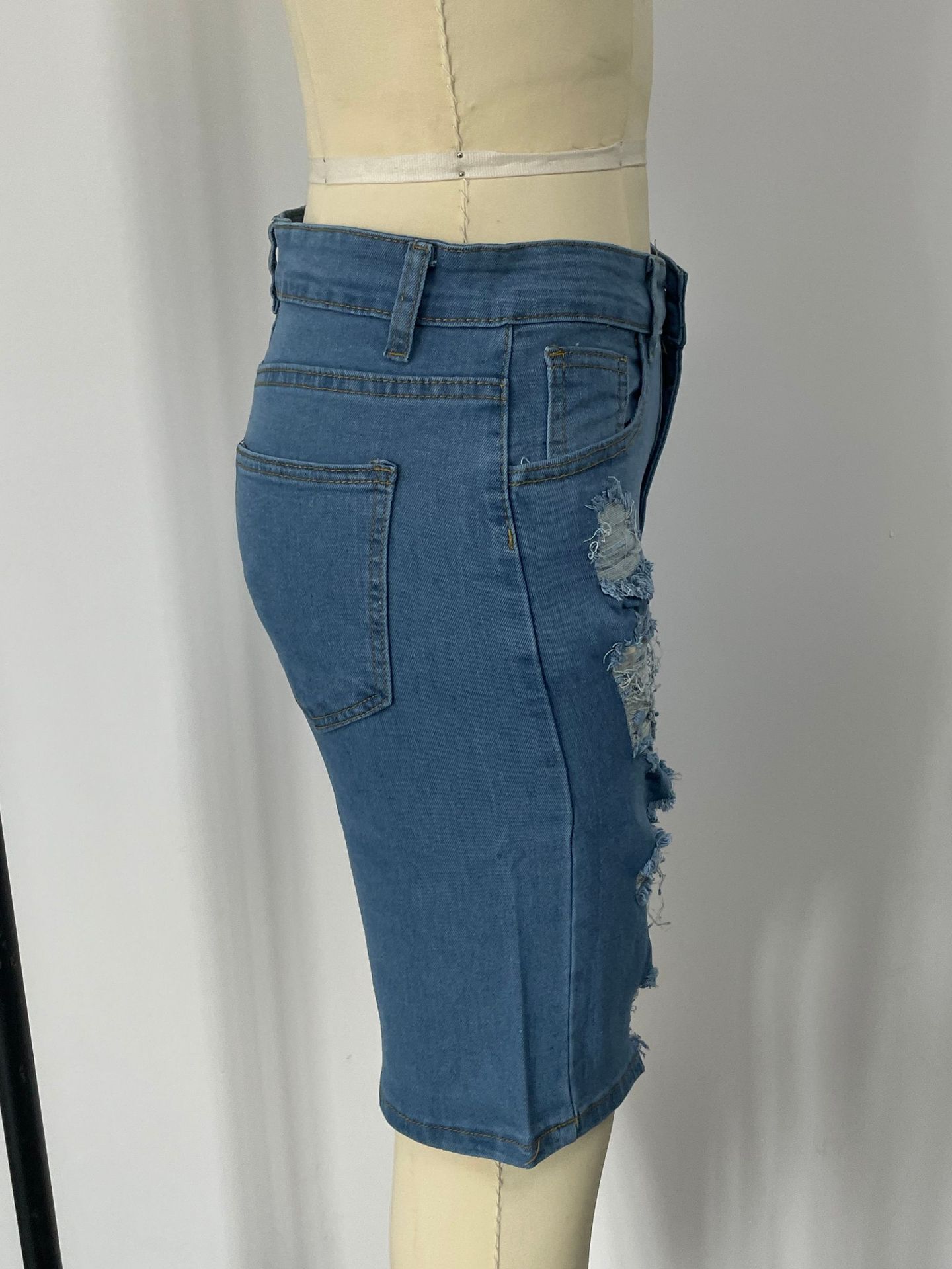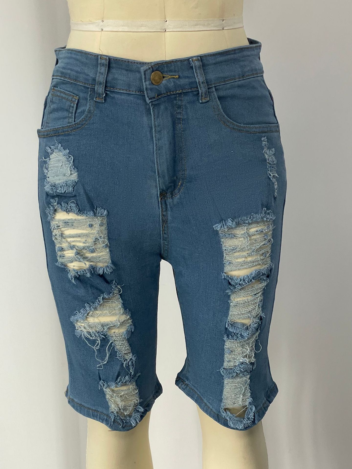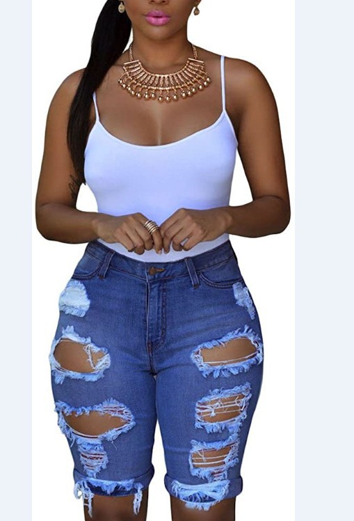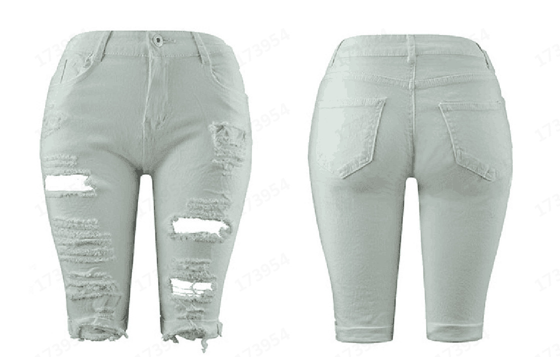 8851 # 유럽풍 데미지 데님 반바지 여성용 슬림핏 2024 신상 패션 캐주얼스토어 가기
