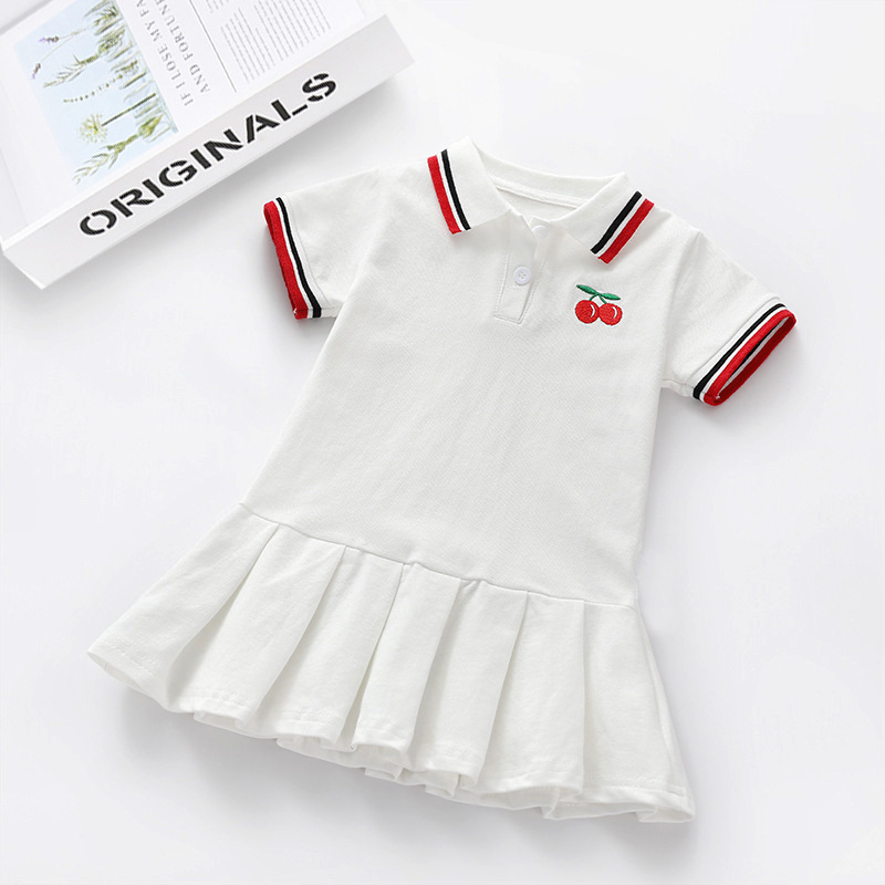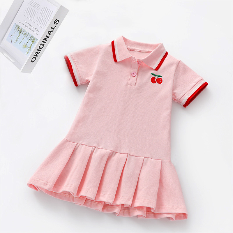 아동복 여아 스커트, 아기 스커트, 세련된 폴로 자수 원피스, 중소형 아동 주름 반팔 스커트, 컬리지 스타일