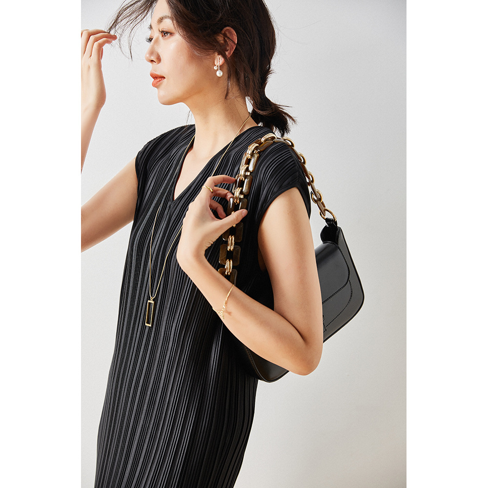 面料选用,YOU质压褶专业原料,可以水洗,拉伸性很大的面料,穿着感觉很舒服,面料略带光泽,拼接带有金粉闪耀,竖行褶皱,弹力大