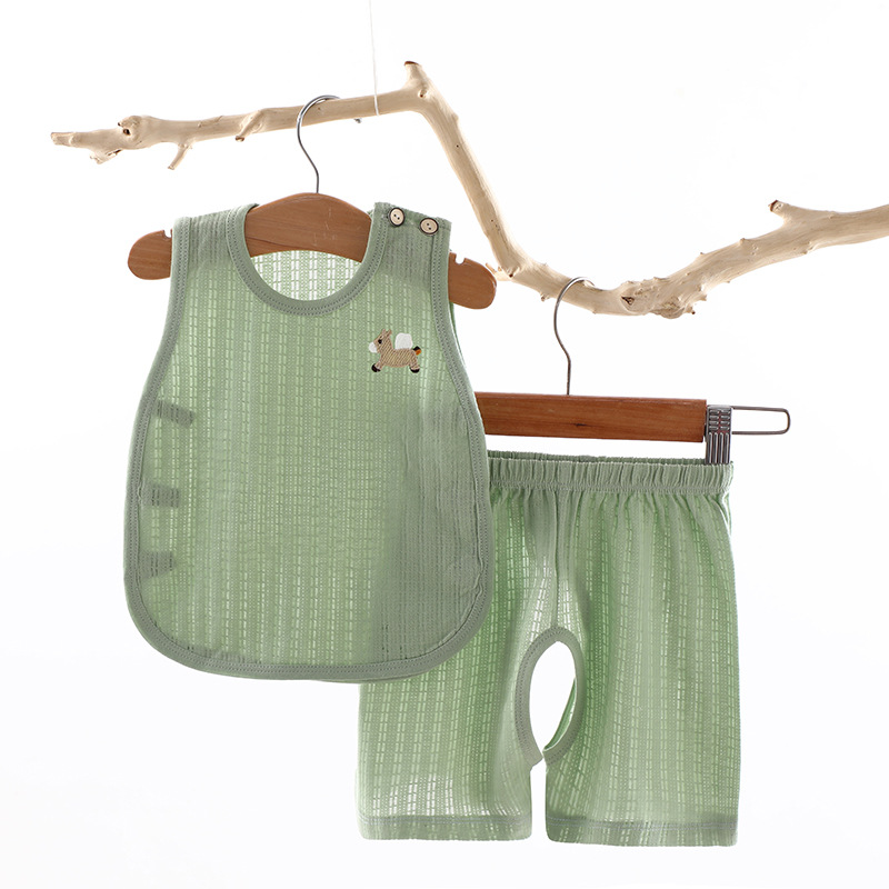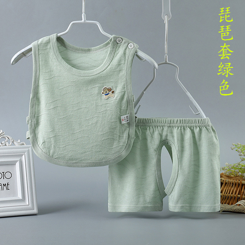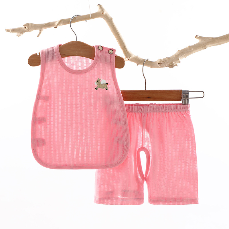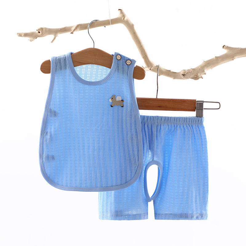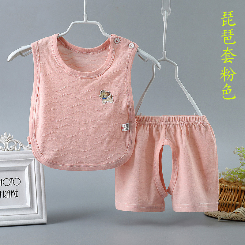아기 옷 여름 땀 흡수 얇은 면 아기 소년과 소녀 민소매 조끼 반바지 세트 얇은 피파 옷 잠옷