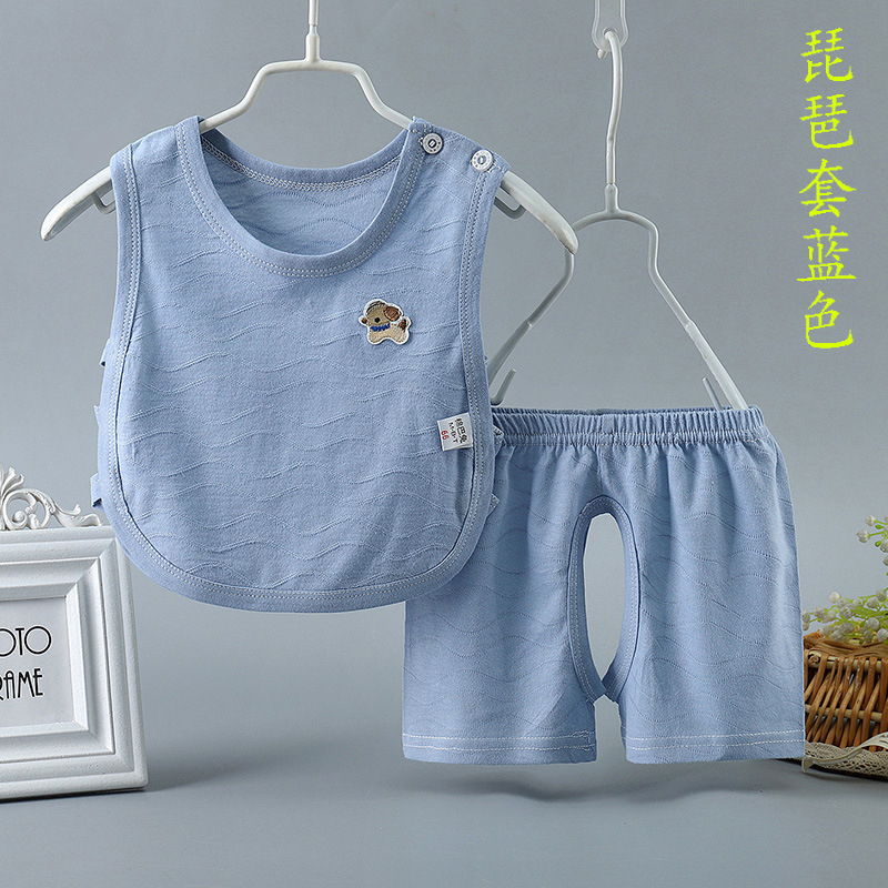 아기 옷 여름 땀 흡수 얇은 면 아기 소년과 소녀 민소매 조끼 반바지 세트 얇은 피파 옷 잠옷스토어 가기
