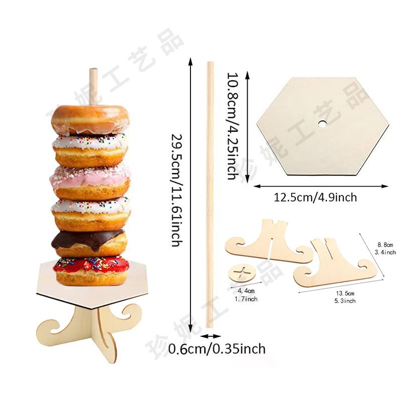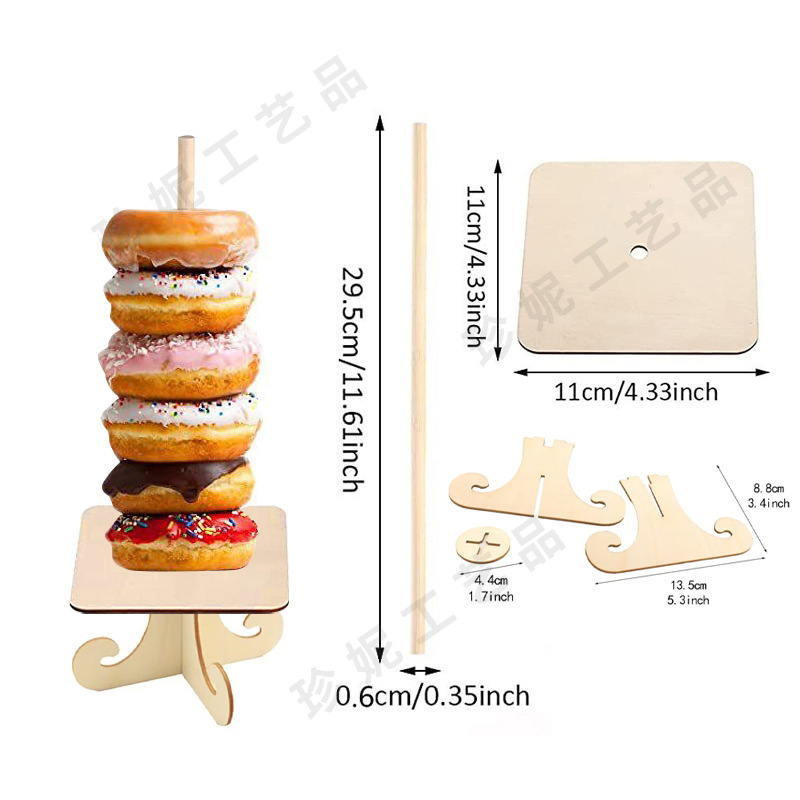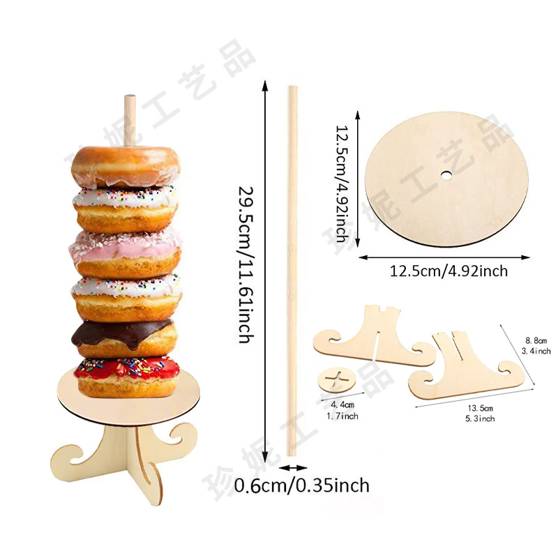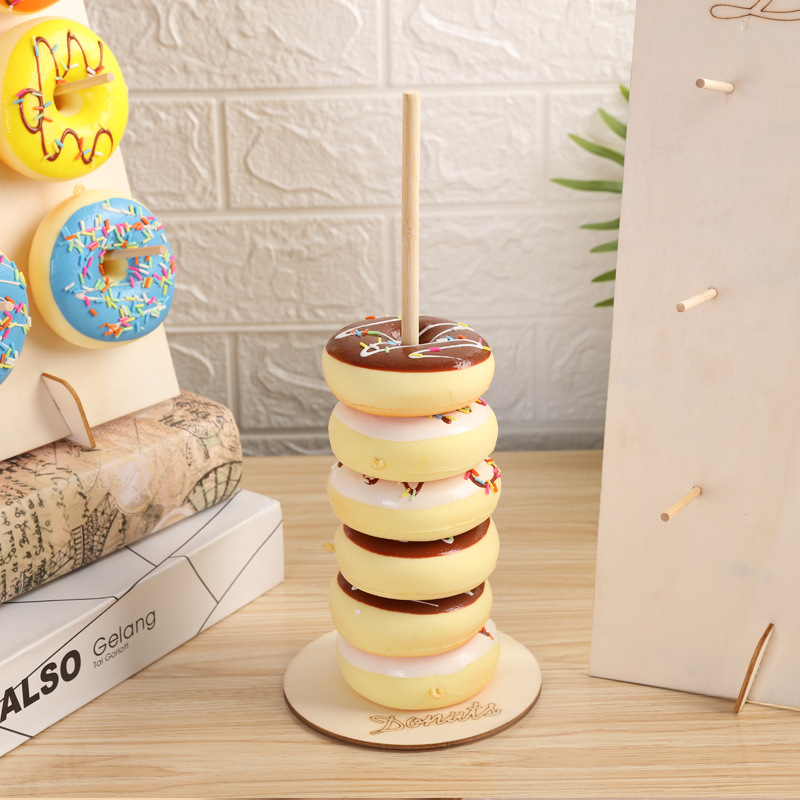 나무 도넛 랙 웨딩 용품 어린이 베이비 샤워 축제 홈 공예 장식품 생일 파티 장식