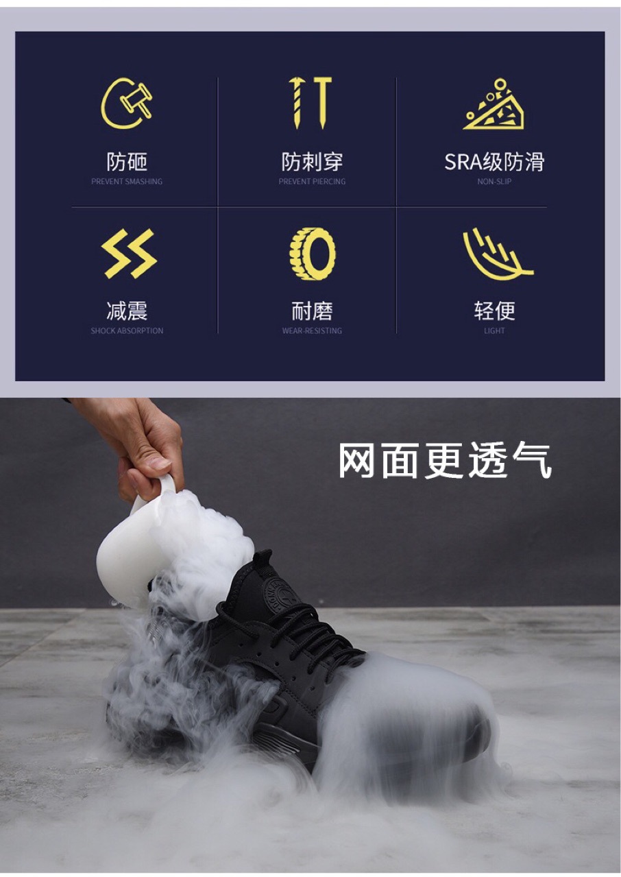 跨境专供劳保鞋男夏季轻便柔软透气安全鞋防砸防刺穿钢工作鞋防臭