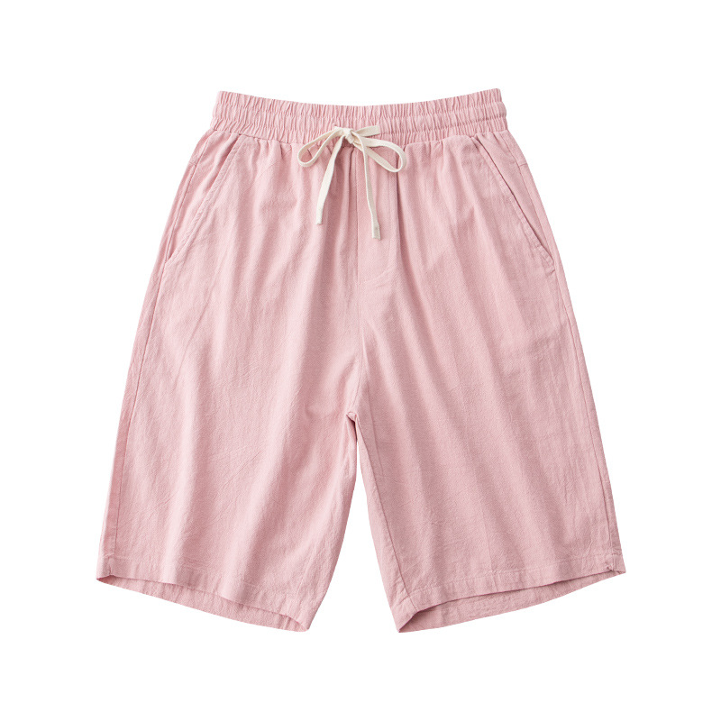 여러 가지 빛깔의 새로운 순면 5 점 바지 얇은 면과 린넨 캐주얼 느슨한 단색 반바지 남자의 재고 도매 머리스토어 가기
