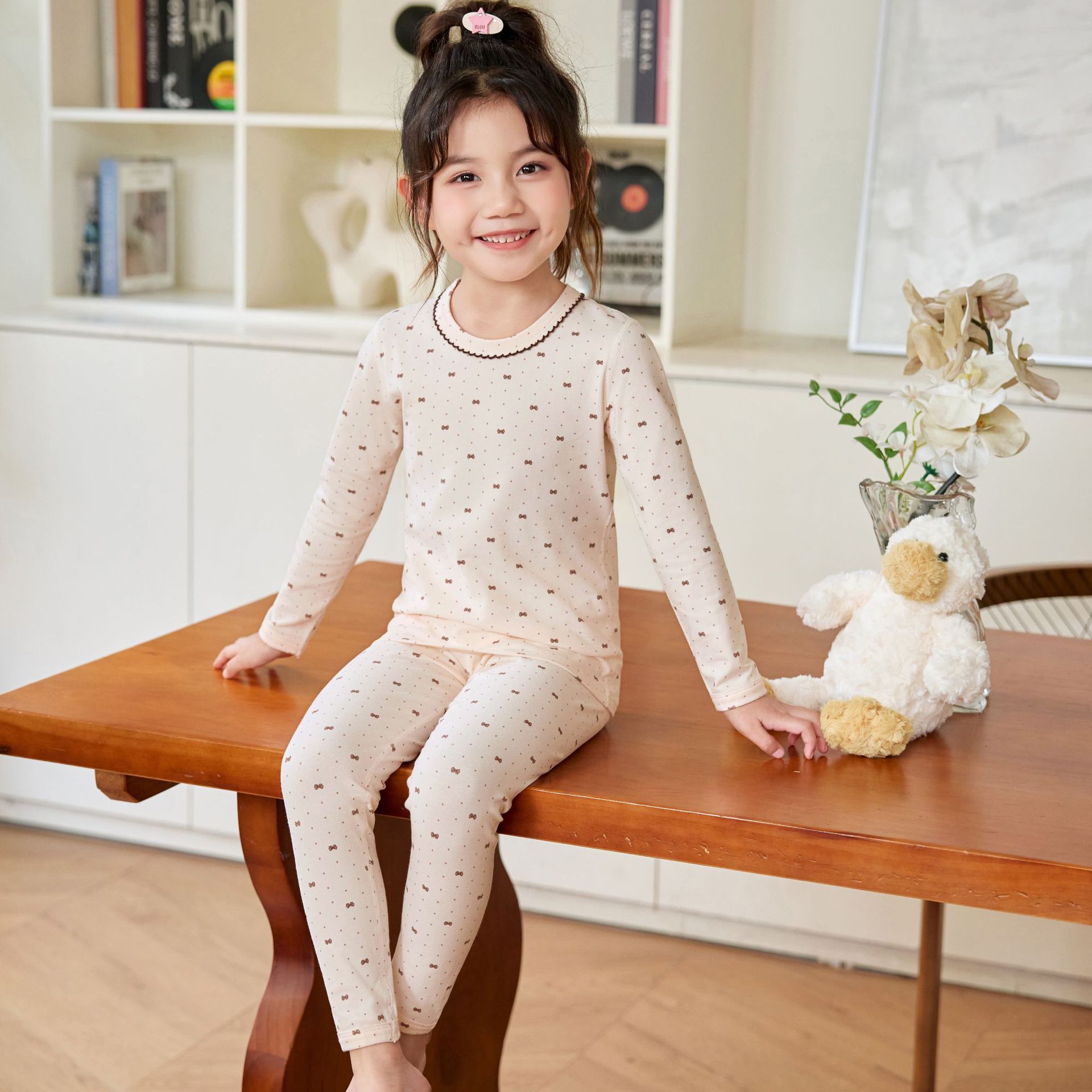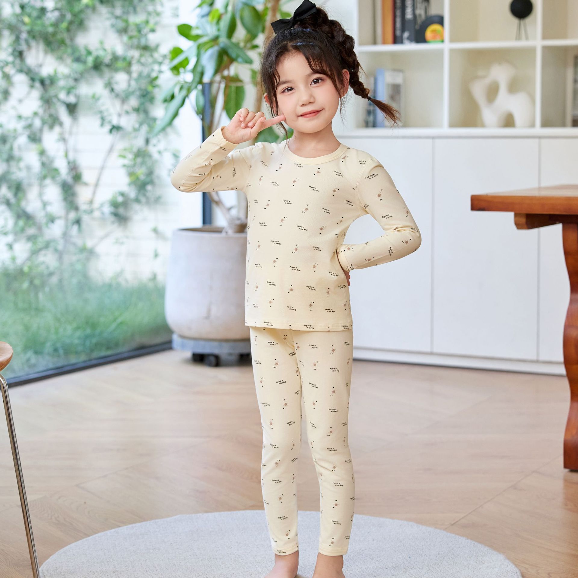 2025 가을 겨울 A급 아동복 면 가을 옷과 긴 바지, 귀엽고 재미있는 만화 캐릭터 아기 가정복, 통기성 좋고 개방형스토어 가기