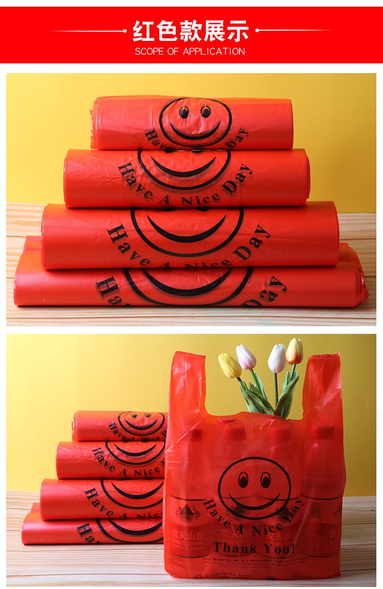 도매 투명 스마일 비닐 봉투 테이크 아웃 과일 포장 쇼핑 가방 두꺼운 플라스틱 휴대용 조끼 포장 가방