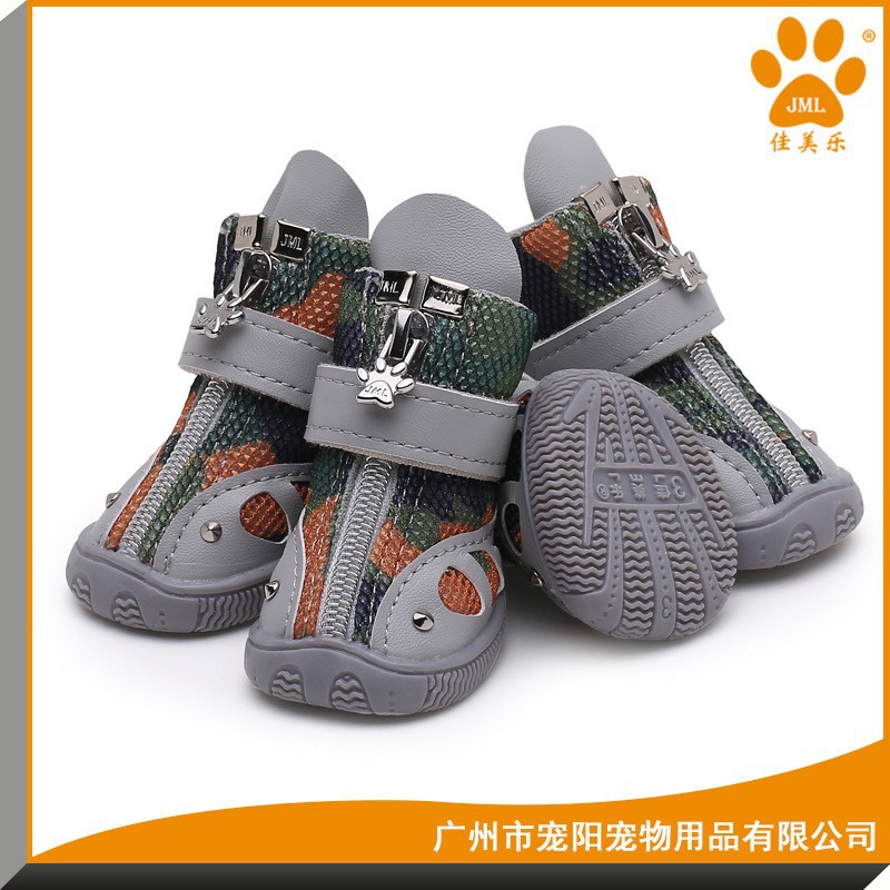 Jiamile 새로운 위장 인쇄 개 신발 통기성 메쉬 신발 작은 물고기 장식 애완 동물 신발 개 신발