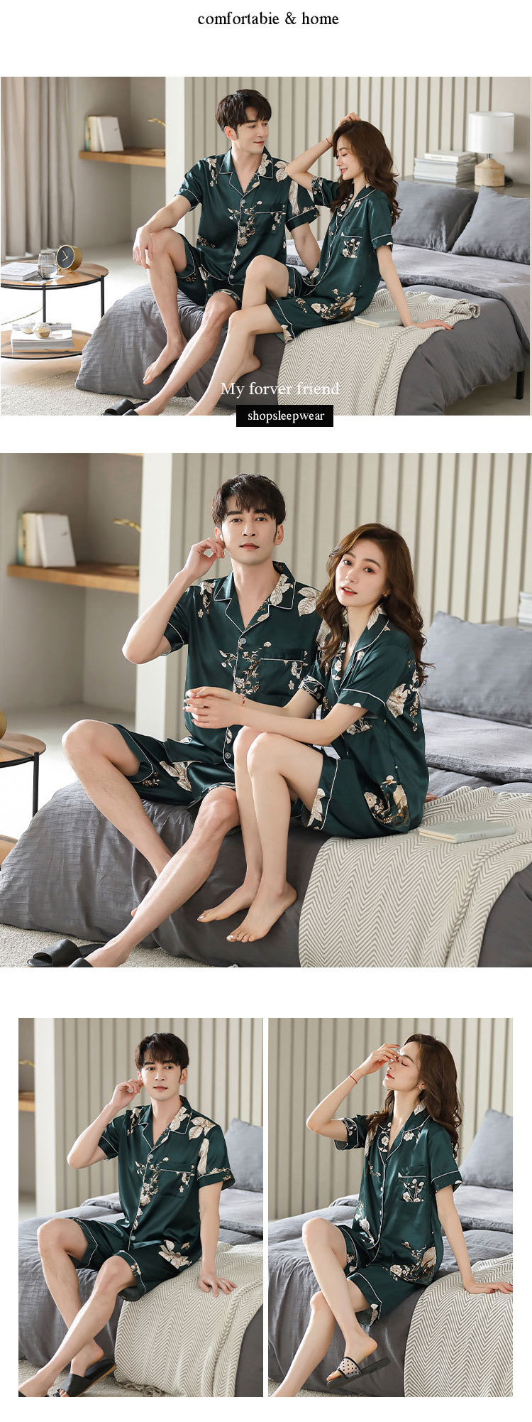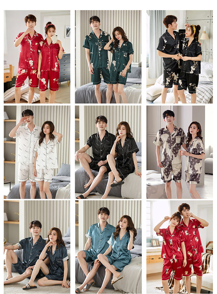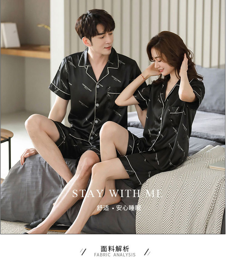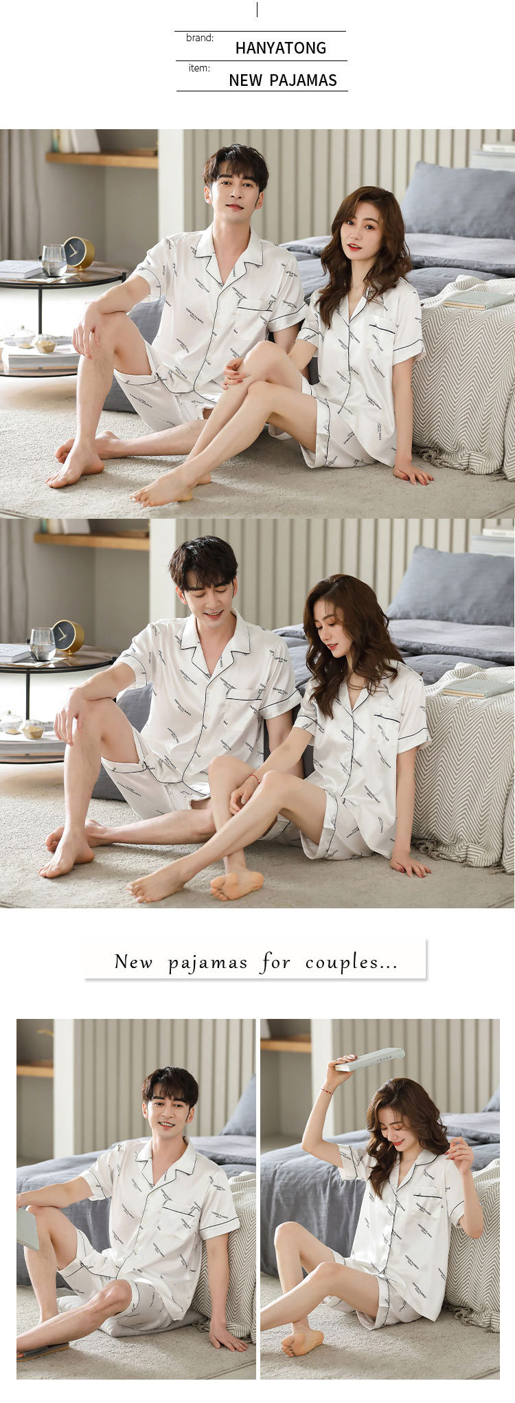 한 Yatong 커플 여름 잠옷 아이스 실크 반팔 반바지 남성과 여성의 가정복 시뮬레이션 실크 세트 신제품