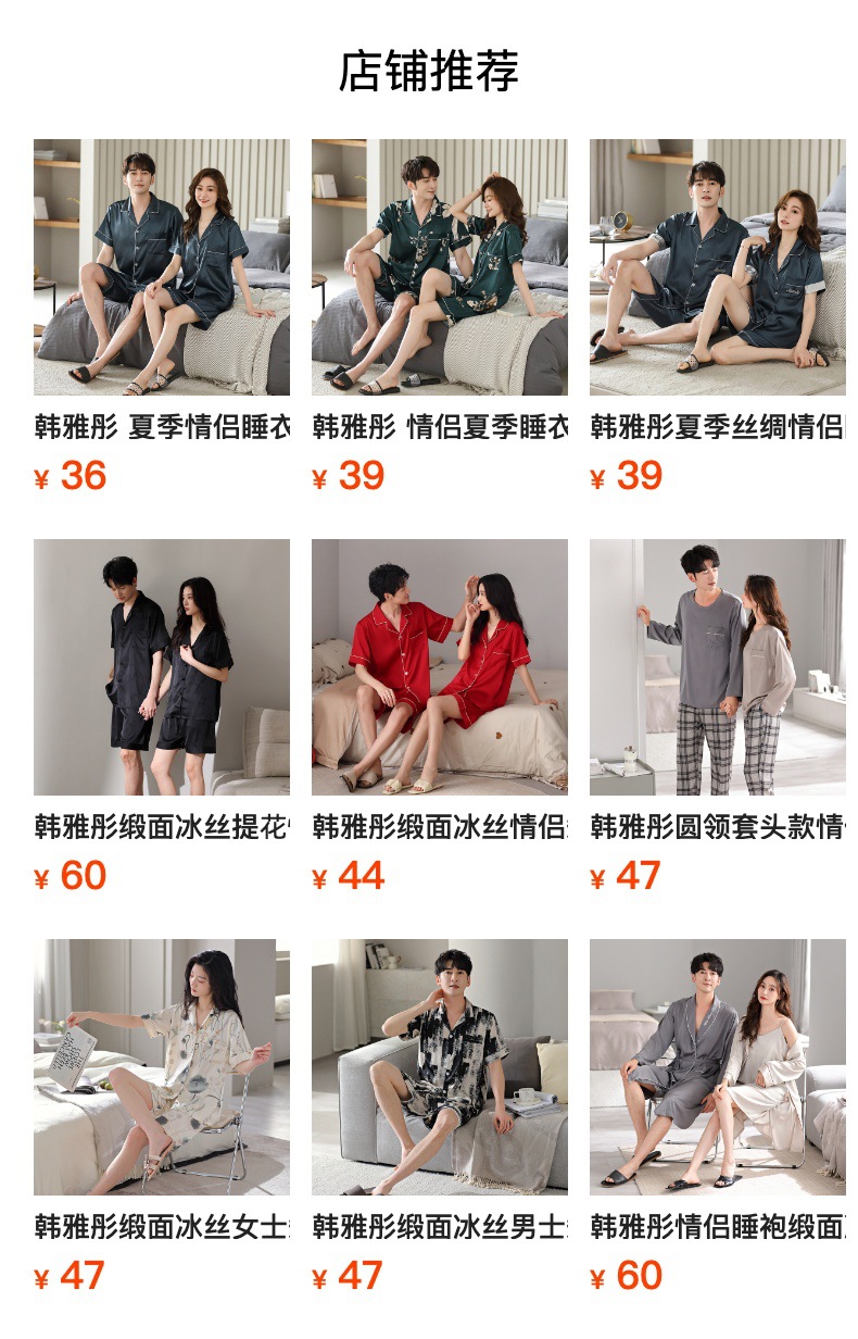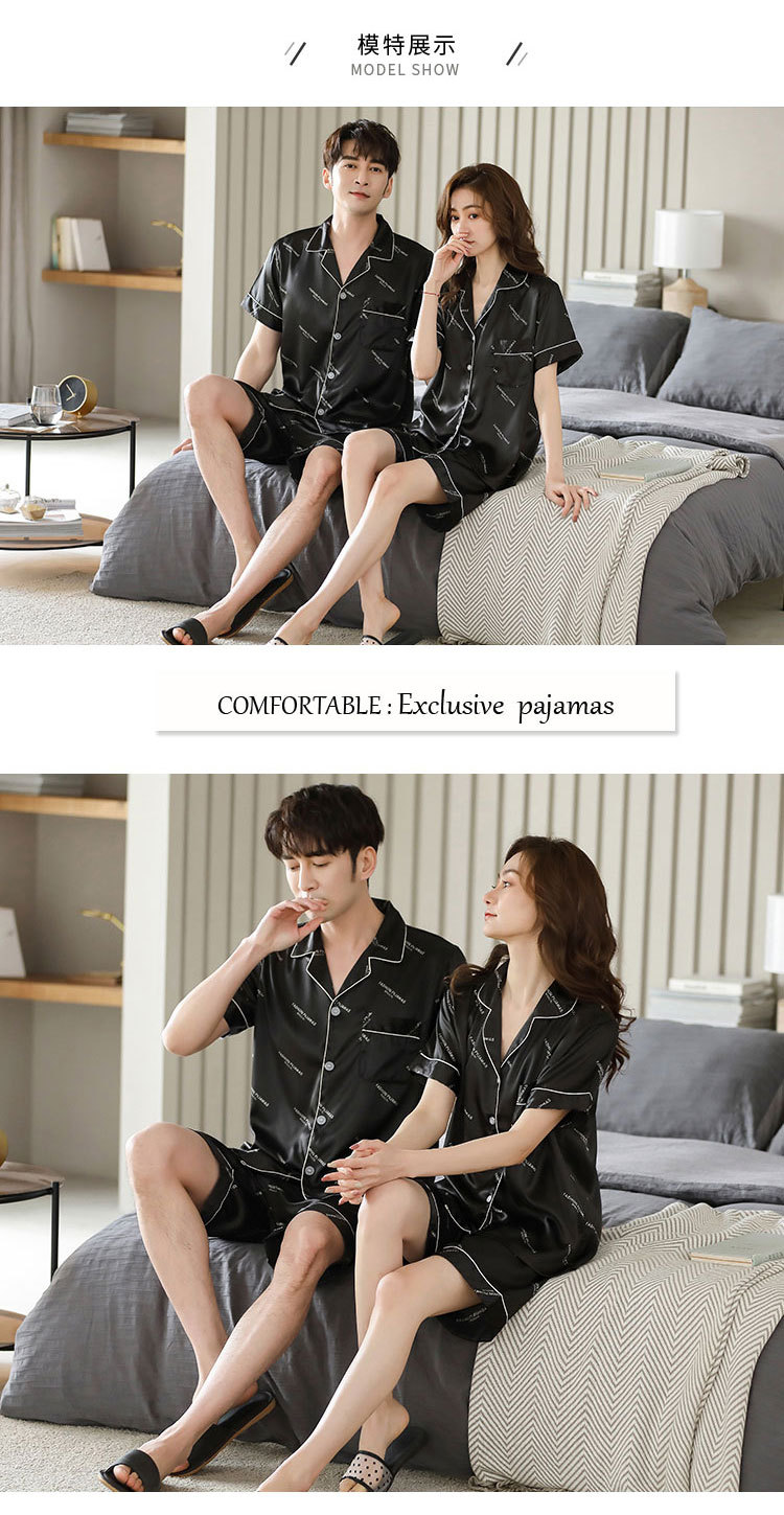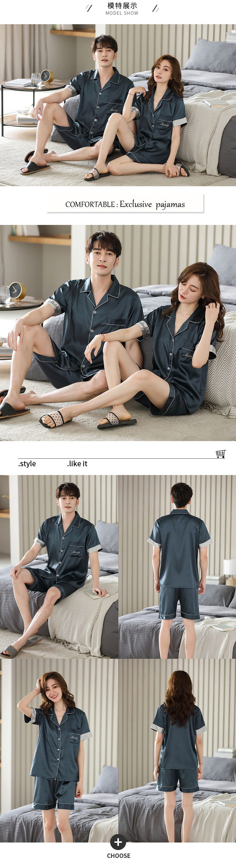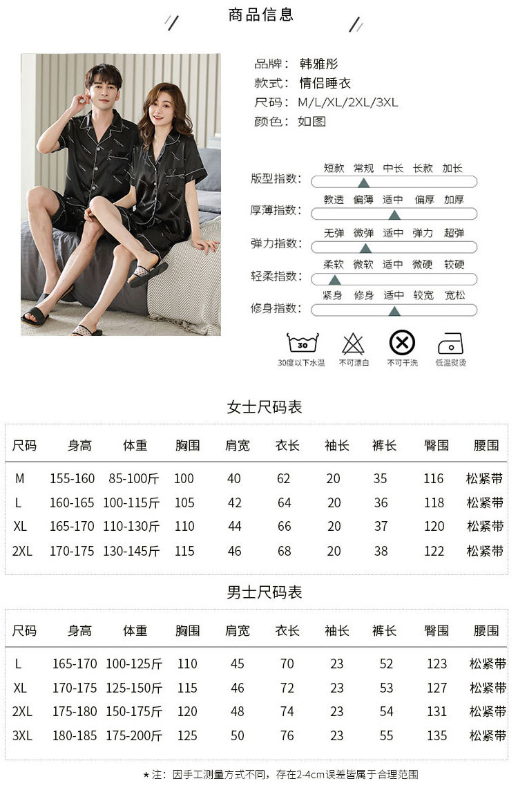 한 Yatong 커플 여름 잠옷 아이스 실크 반팔 반바지 남성과 여성의 가정복 시뮬레이션 실크 세트 신제품스토어 가기