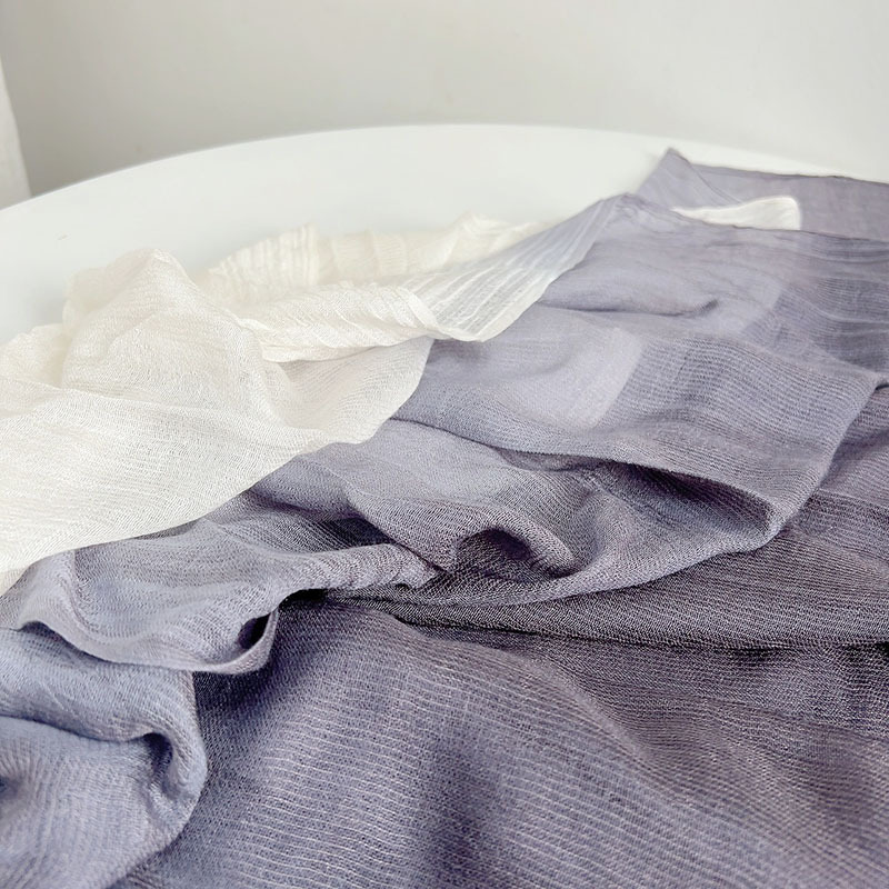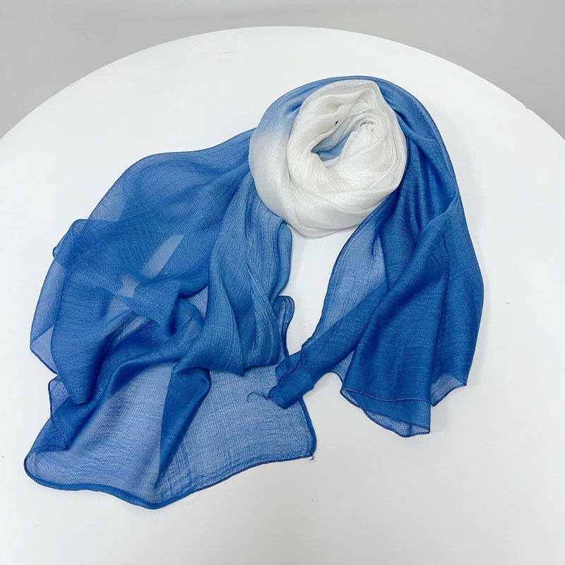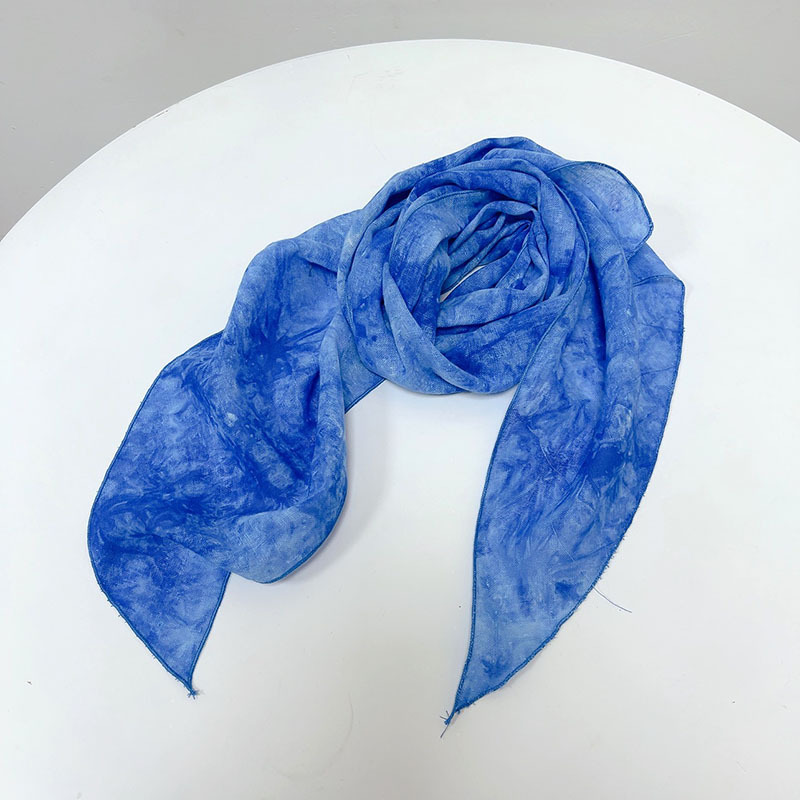 봄과 여름 새로운 린넨 타이 염색 스카프 얇은 통기성 얇은 좁은 스카프 특징 경 사진 스카프 더블 컬러 사용 가능