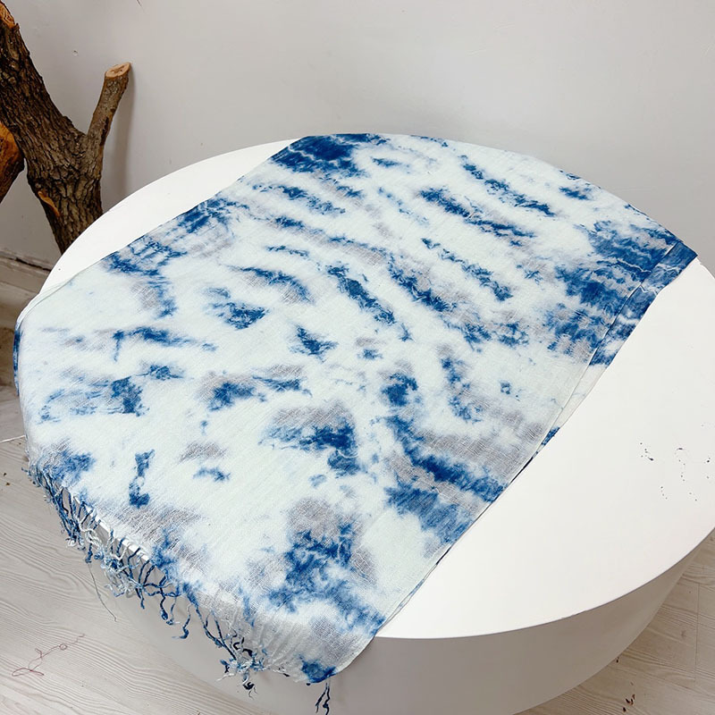 봄과 여름 새로운 린넨 타이 염색 스카프 얇은 통기성 얇은 좁은 스카프 특징 경 사진 스카프 더블 컬러 사용 가능스토어 가기