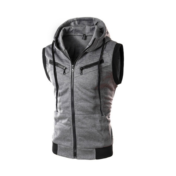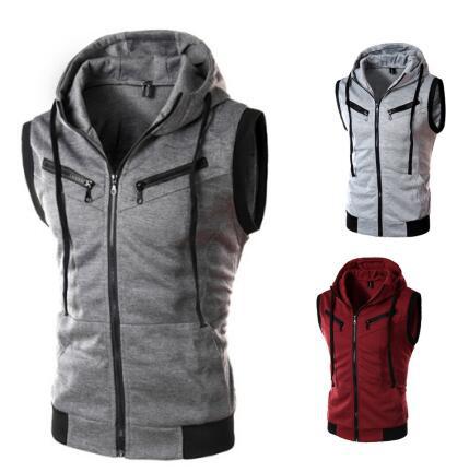 厂家直销2019外贸速卖通春夏新款男士连帽休闲运动针织背心马甲