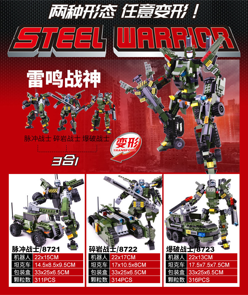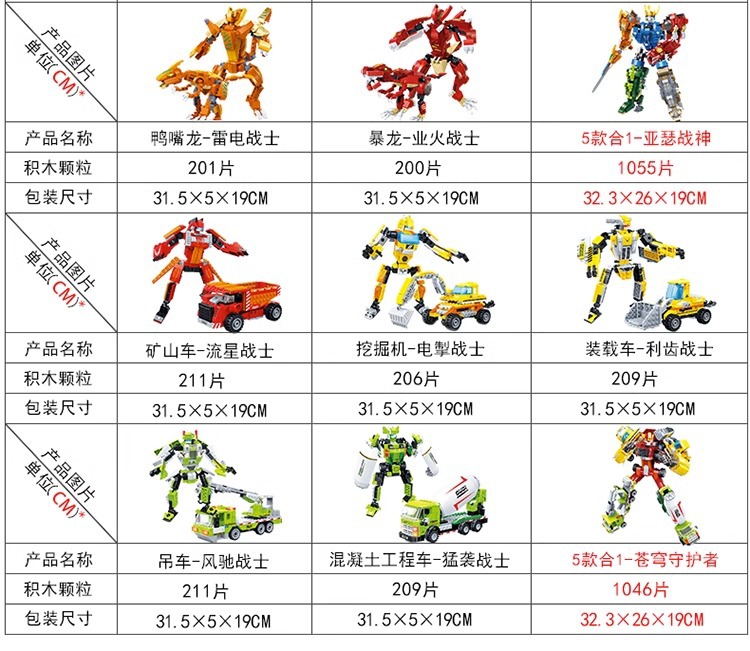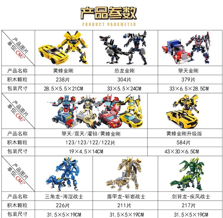 Goody 빌딩 블록 어린이 교육 변형 로봇 말벌 킹콩 공룡 럭셔리카 로고 소년 조립 장난감 8715