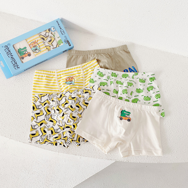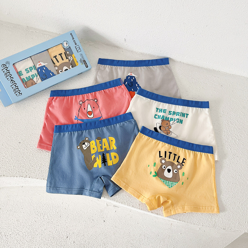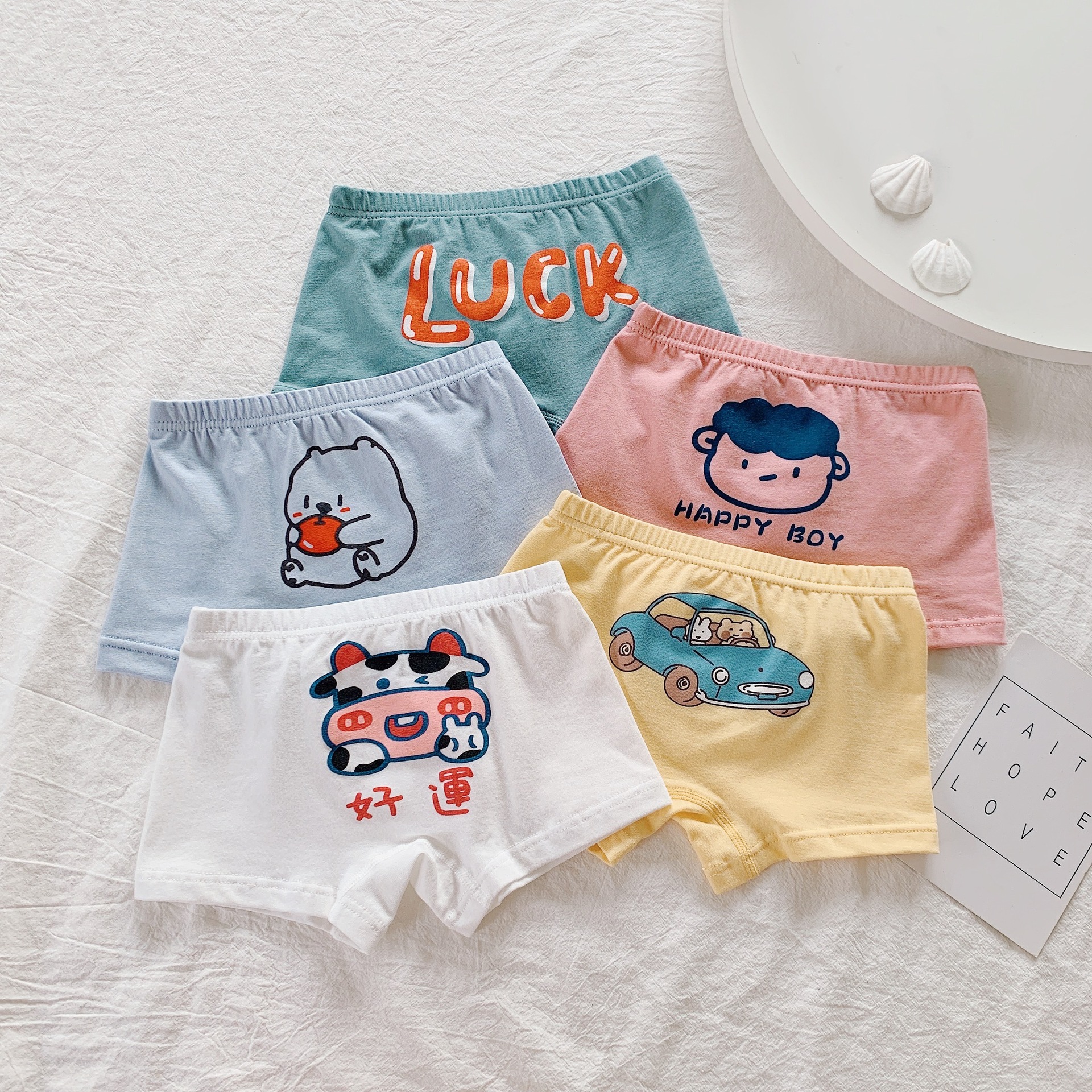 MIMO 5팩 순면 A급 아동 속옷, 남아용 사각팬티, 중소형 아동 만화반바지, 대외무역 제조사