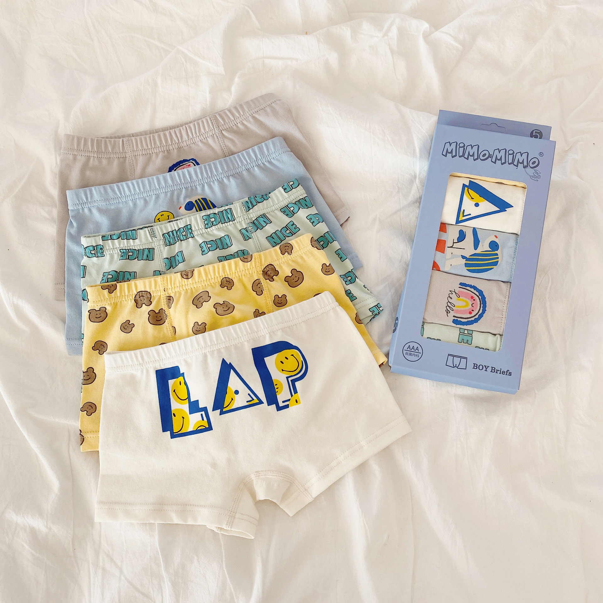 MIMO 5팩 순면 A급 아동 속옷, 남아용 사각팬티, 중소형 아동 만화반바지, 대외무역 제조사스토어 가기