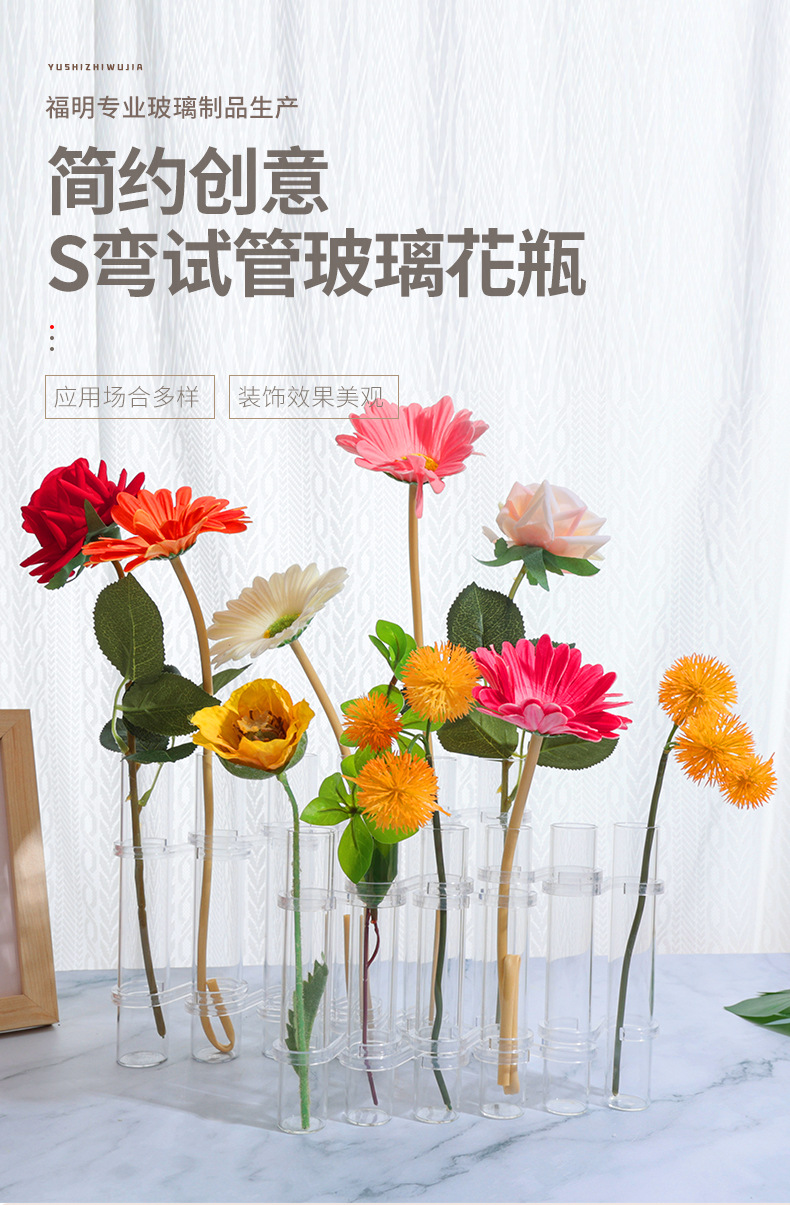 북유럽 인 테스트 튜브 투명 유리 수경 꽃병 국경 공급 꽃 식물 홈 꽃꽂이 장식