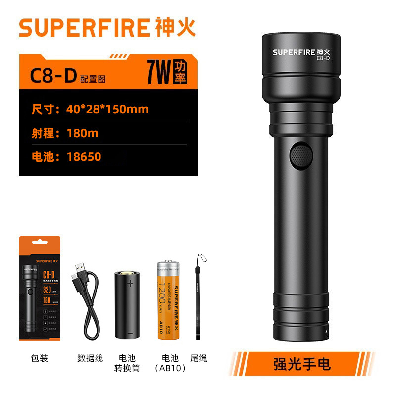 Shenhuo LED 손전등 충전 야외 비상 조명 홍수 방지 방수 휴대용 손전등 C8 제조 업체 도매스토어 가기