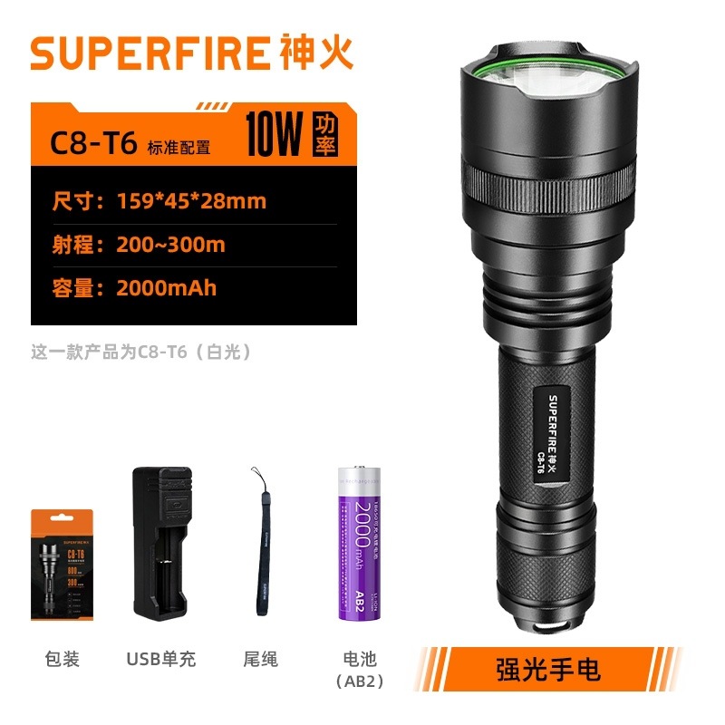 • C8-T6-노란색 표시등(전력 10W + 표준 18650 배터리)