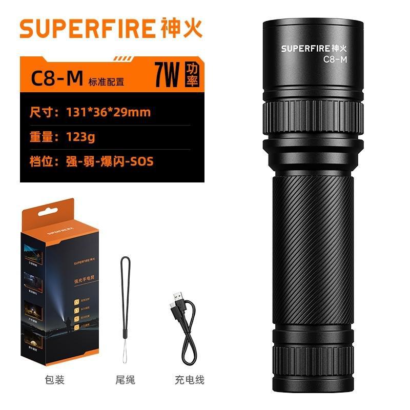 Shenhuo LED 손전등 충전 야외 비상 조명 홍수 방지 방수 휴대용 손전등 C8 제조 업체 도매