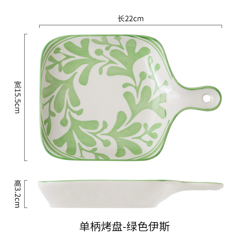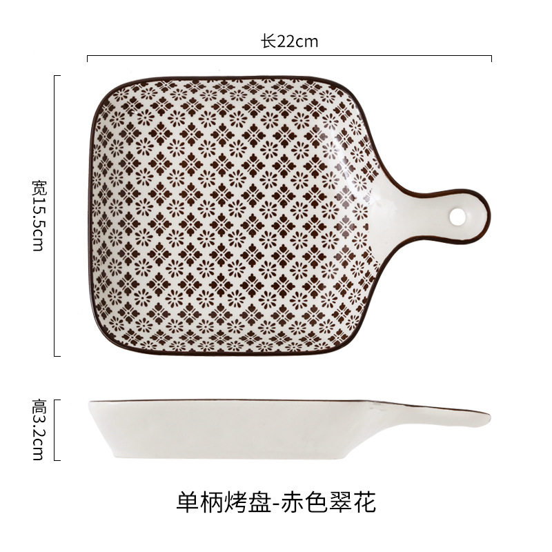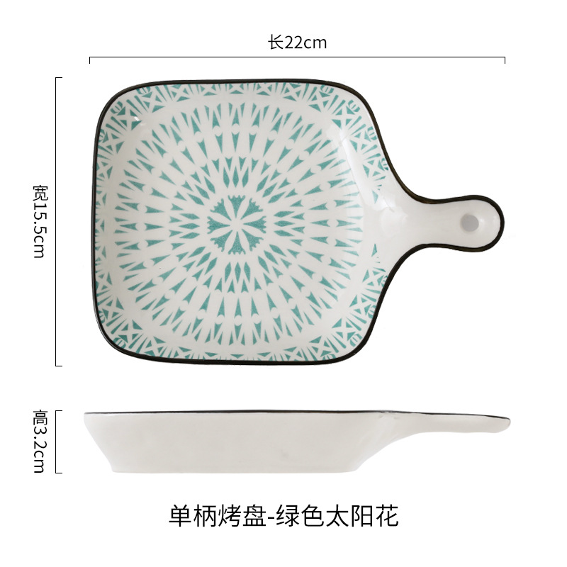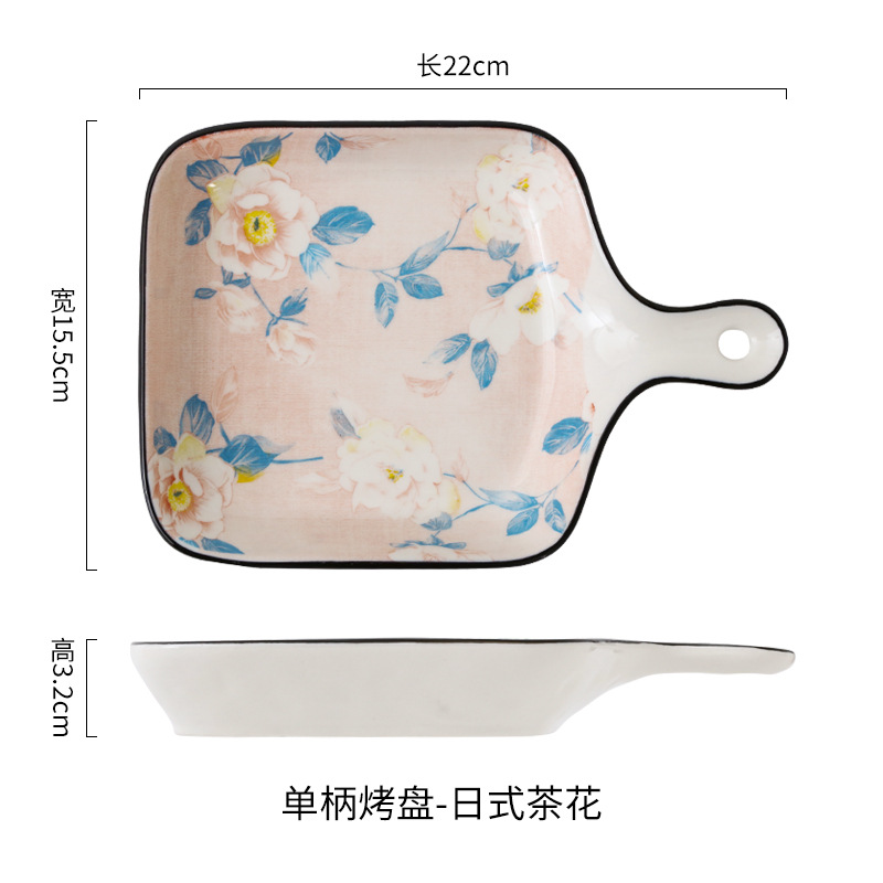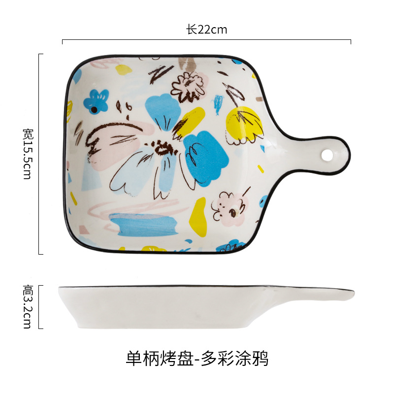 싱글 핸들 베이킹 플레이트 일본식 창조적 인 식기 세라믹 underglaze 색상 가정용 북유럽 스타일 유행 구운 쌀 인터넷 축하 접시스토어 가기