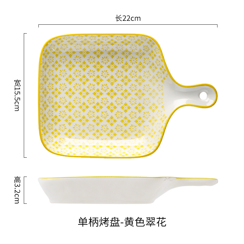 싱글 핸들 베이킹 플레이트 일본식 창조적 인 식기 세라믹 underglaze 색상 가정용 북유럽 스타일 유행 구운 쌀 인터넷 축하 접시