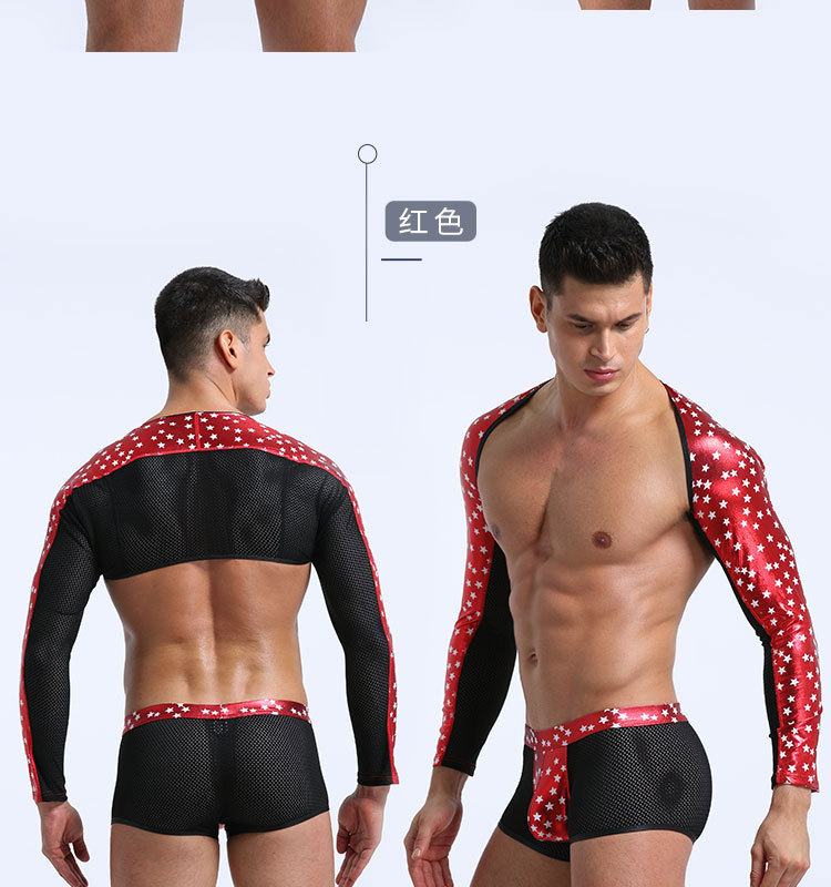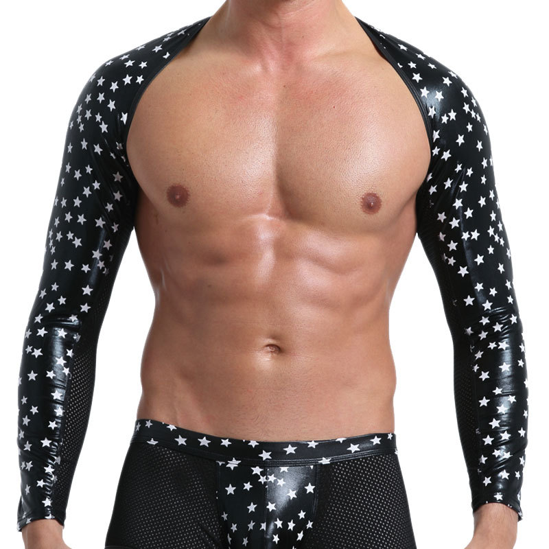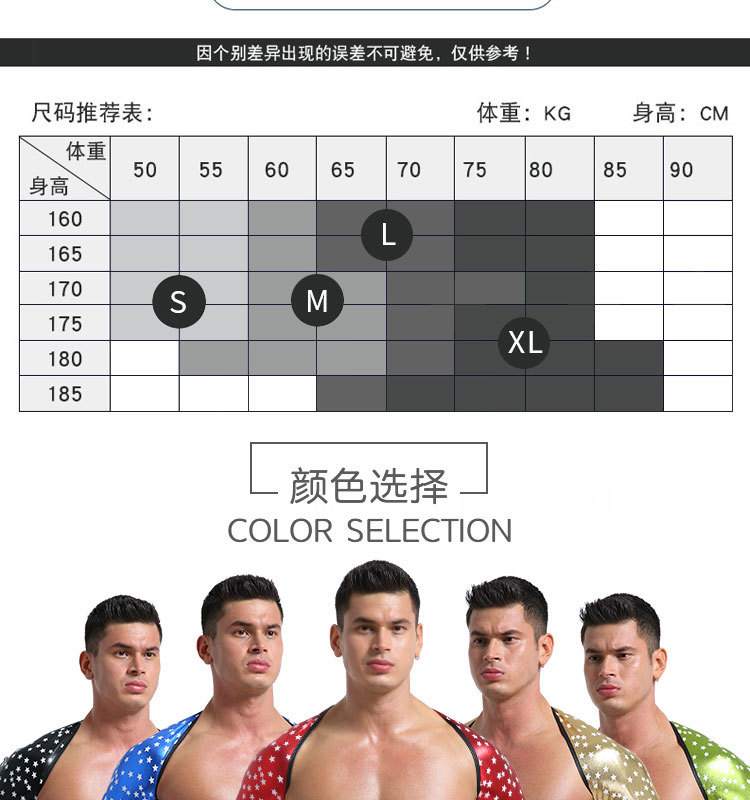 남자의 모조 가죽 조끼 통기성 섹시한 메쉬 에나멜 가죽 나이트 클럽 성능 남자의 어깨 조끼 조끼 조끼스토어 가기