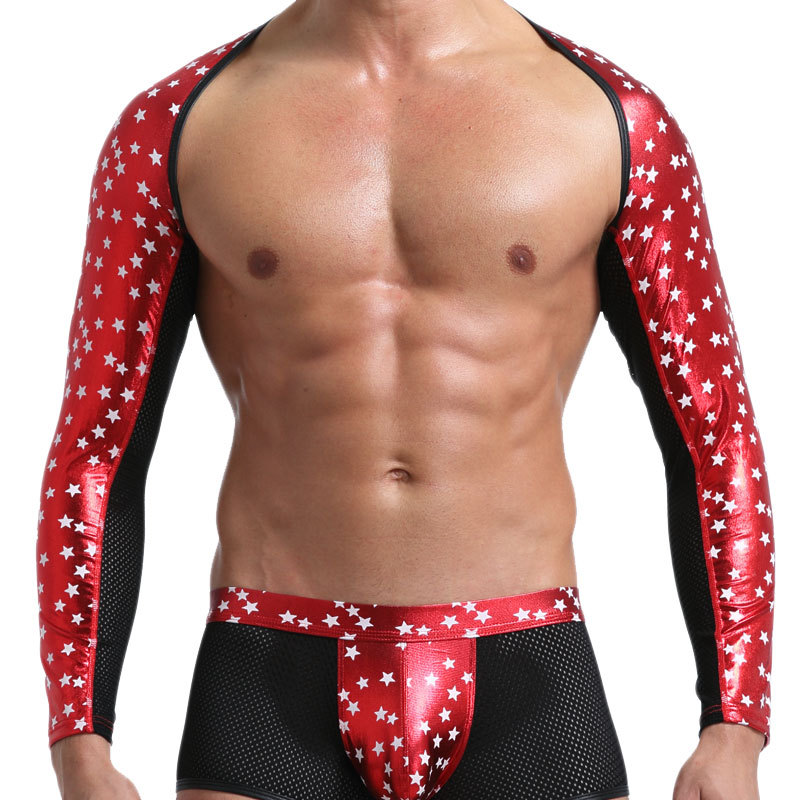 남자의 모조 가죽 조끼 통기성 섹시한 메쉬 에나멜 가죽 나이트 클럽 성능 남자의 어깨 조끼 조끼 조끼