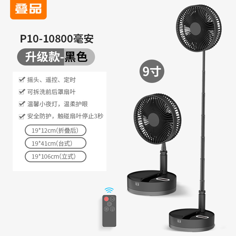 • P10(9 인치) 7200 mA + 흔들림 헤드 리모콘 + 야간 조명 + 타이밍 (블랙)