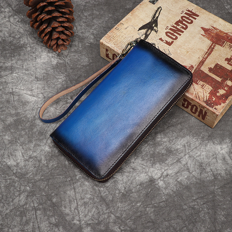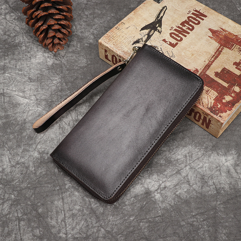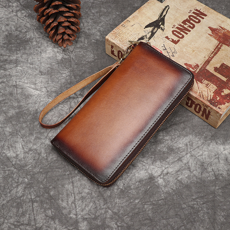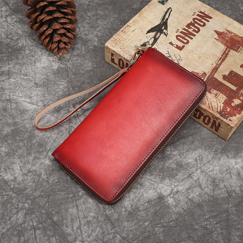 제조업체 도매 신상품 나무껍질 가죽 여성 지퍼 지갑 롱 스타일 천연 가죽 대용량 핸드백 원피스 배송스토어 가기