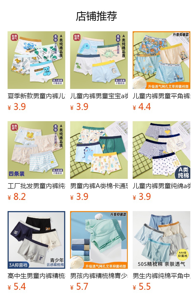 아동 속옷 도매 남아 사각팬티 중대형 어린이 남학생 초등학생 속옷 남아 순면 항균 업그레이드스토어 가기