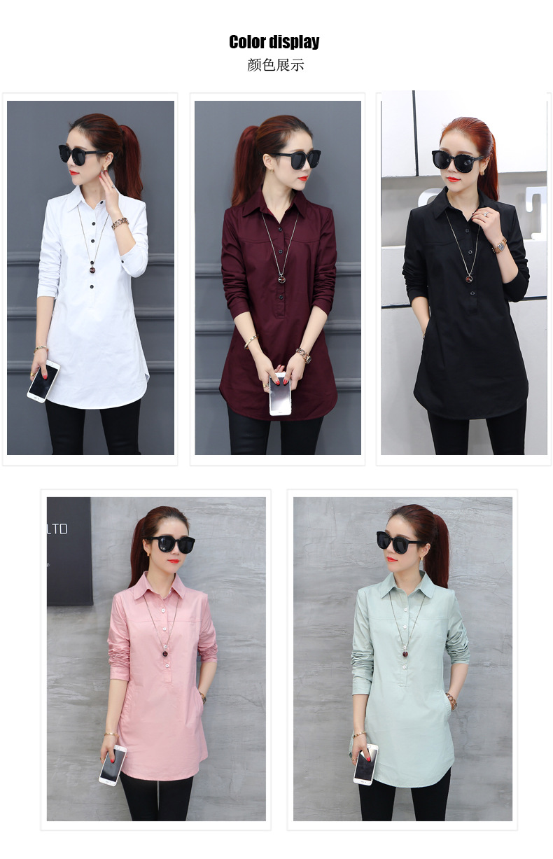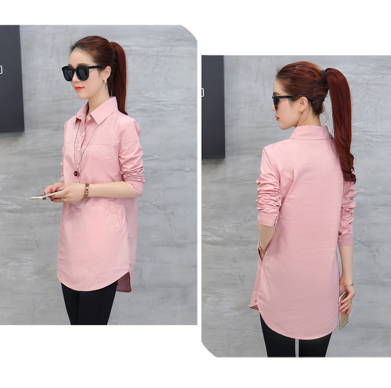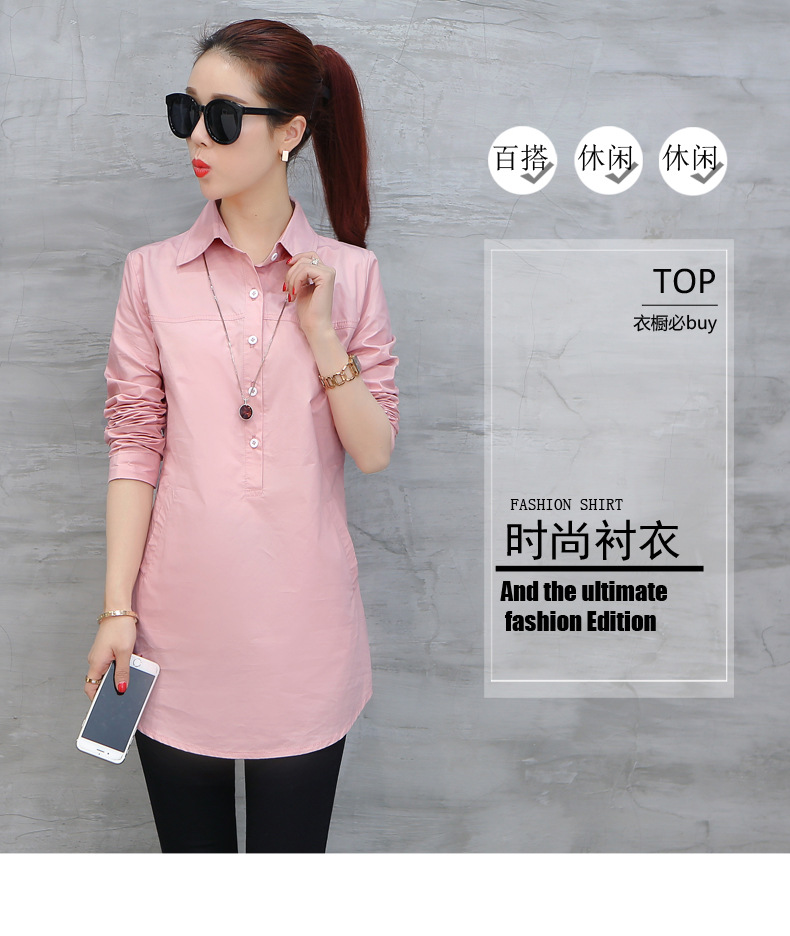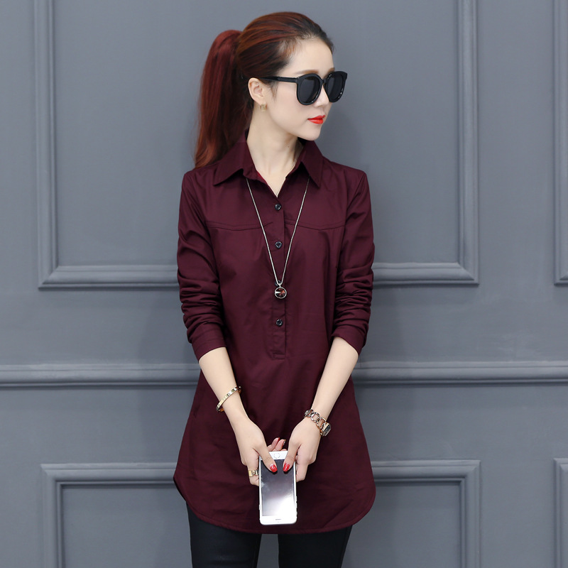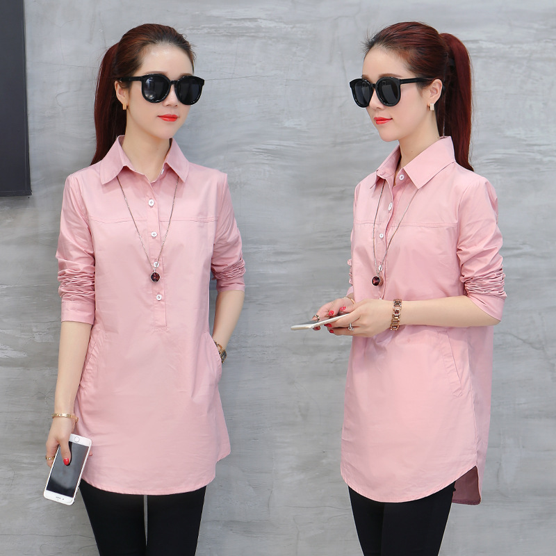 여성용 긴팔 캐주얼 셔츠 봄 신상 여성복 한국 스타일 슬림핏 중간 길이 셔츠 트렌디하고 다용도스토어 가기