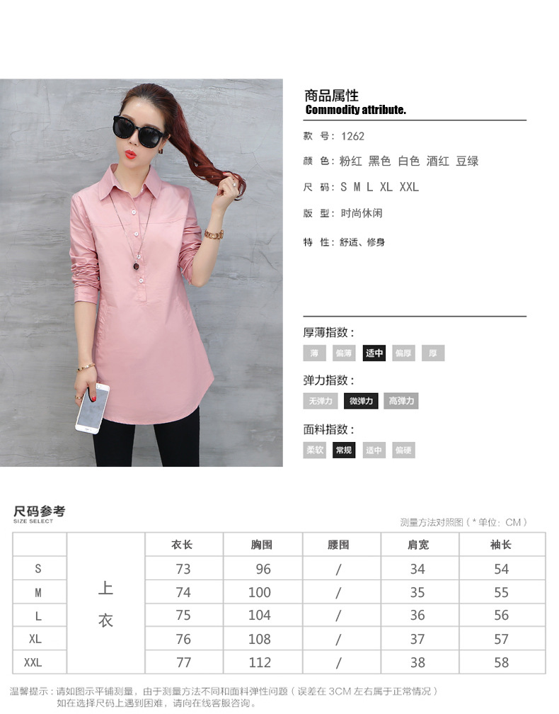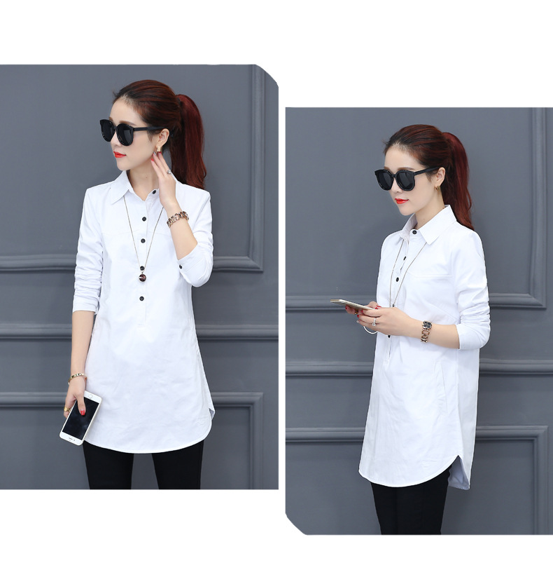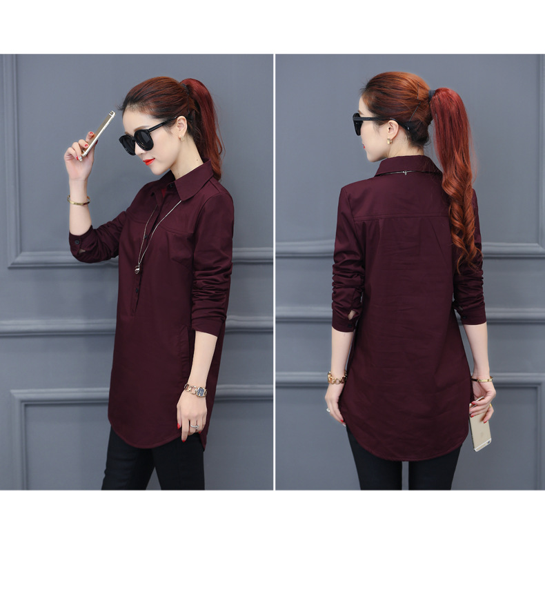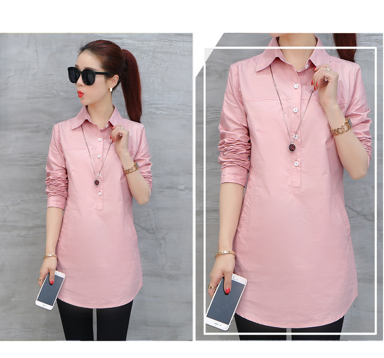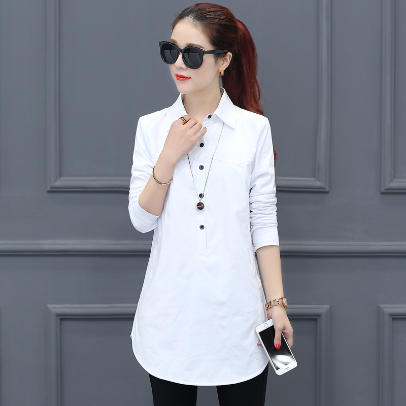 여성용 긴팔 캐주얼 셔츠 봄 신상 여성복 한국 스타일 슬림핏 중간 길이 셔츠 트렌디하고 다용도스토어 가기