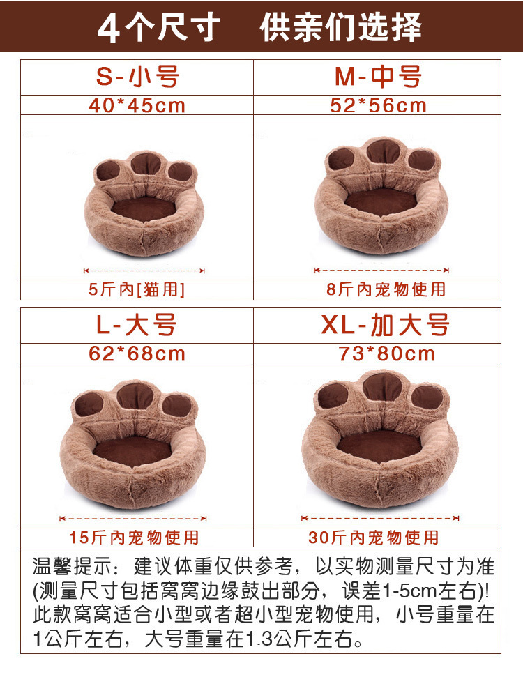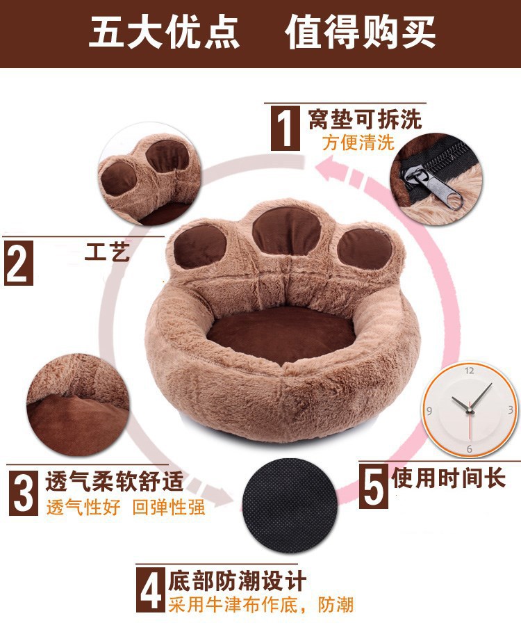 공장 직접 애완 동물 용품 만화 고양이 개집 개 개집 패드 소파 곰 발 애완 동물 개집 이동식 및 빨 수있는 원활한 모발 생성스토어 가기
